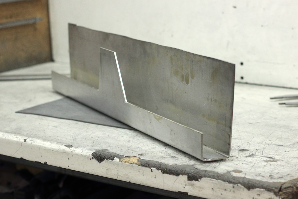That’s a quote from my post about Honda CB815 chain guard and for Kawasaki KZ650 cafe-racer I thought out chain guard of similar design. Thus, I suppose I already could call it Gazzz Garage traditional design. And as with CB815 chain guard I started from bending 3mm aluminum sheet into U-shaped profile.