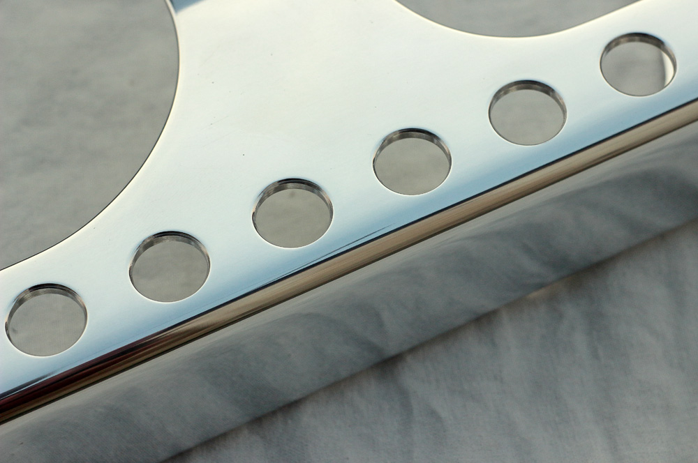 I polished chain guard with my usual approach: polishing-sanding-polishing. I was not picky on the internal side; its destiny is to be covered in chain lube and grease anyway. Result looked very nice.