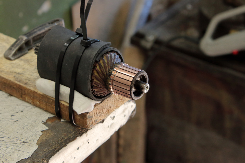 I checked and maintained the armature (rotor) by the book. Here is how my improvised holder for rotor looked :