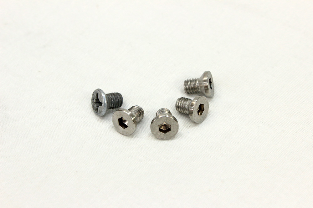 I decided that stainless steel screws will fit such an application, so I modified four of them to replace original screws.