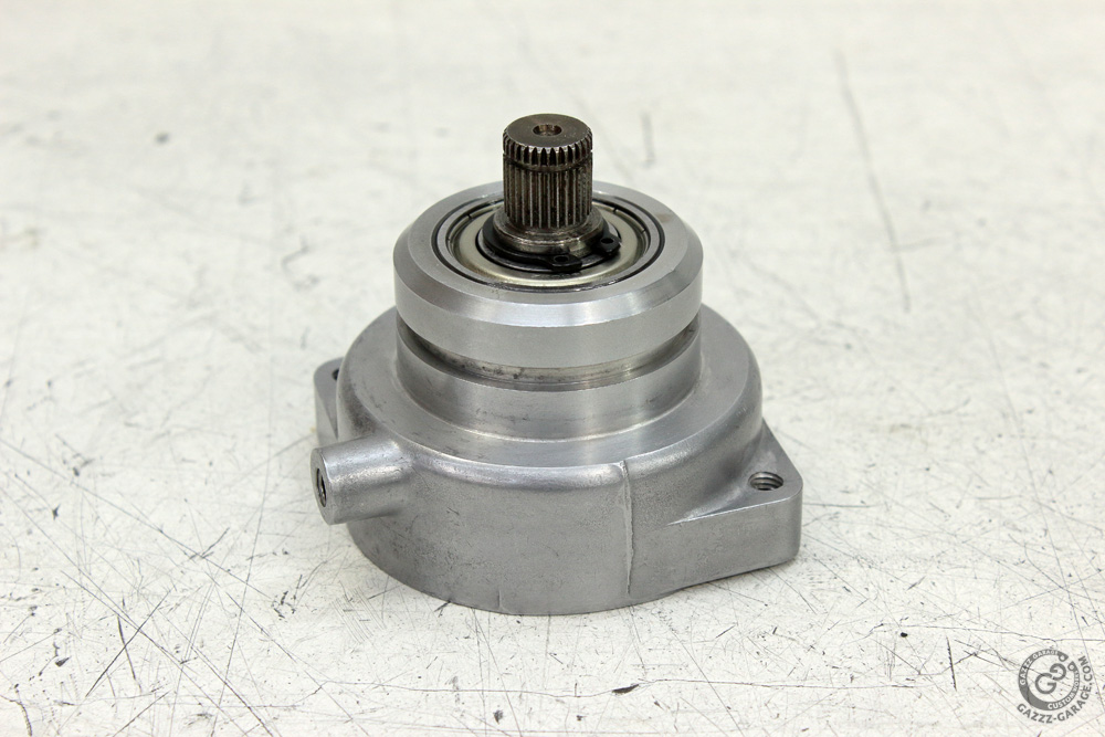 Screw two bolts and install starter motor pinion. Just don’t forget to install it with chamfered teeth facing out.