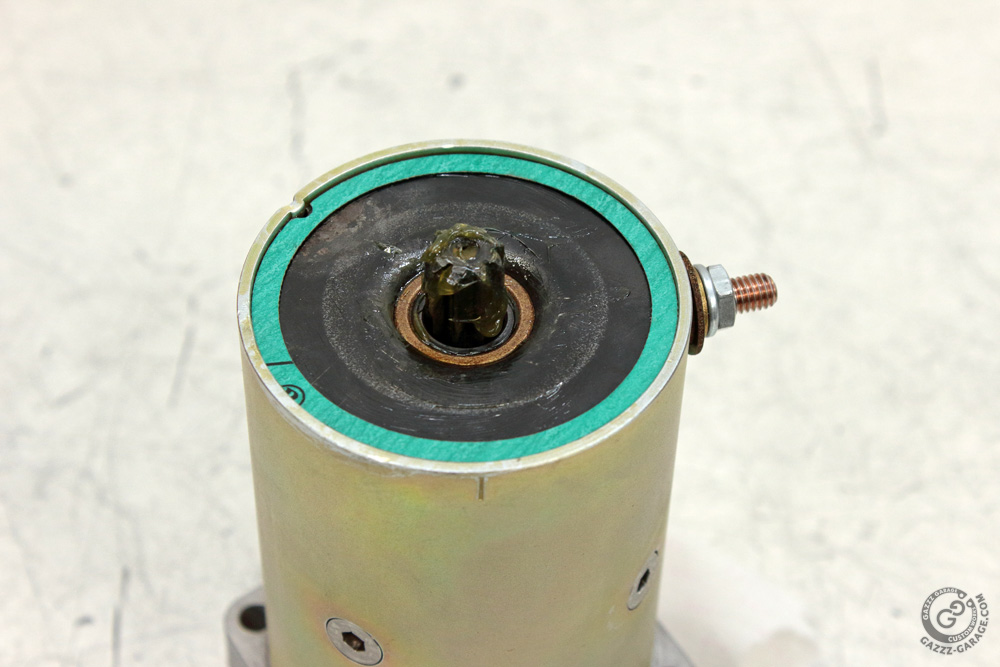 Then I greased the thrust washers, put them in the original sequence (just note it when disassembling), greased the end cover bushing, installed the rotor into the yoke assembly and closed it with the end cover. Then I put another set of thrust washers in the right order on to the rotor shaft and was ready to put the end plate in place. I did operations in such order only to demonstrate significance of “wide” gasket. Take a close look on these photos: