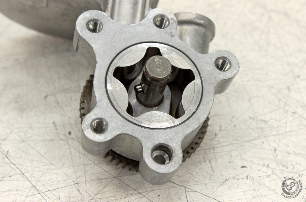 Then I installed a pump shaft with gear and pins.