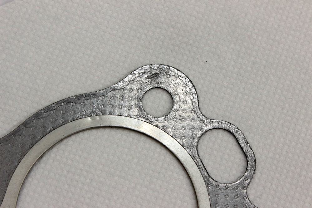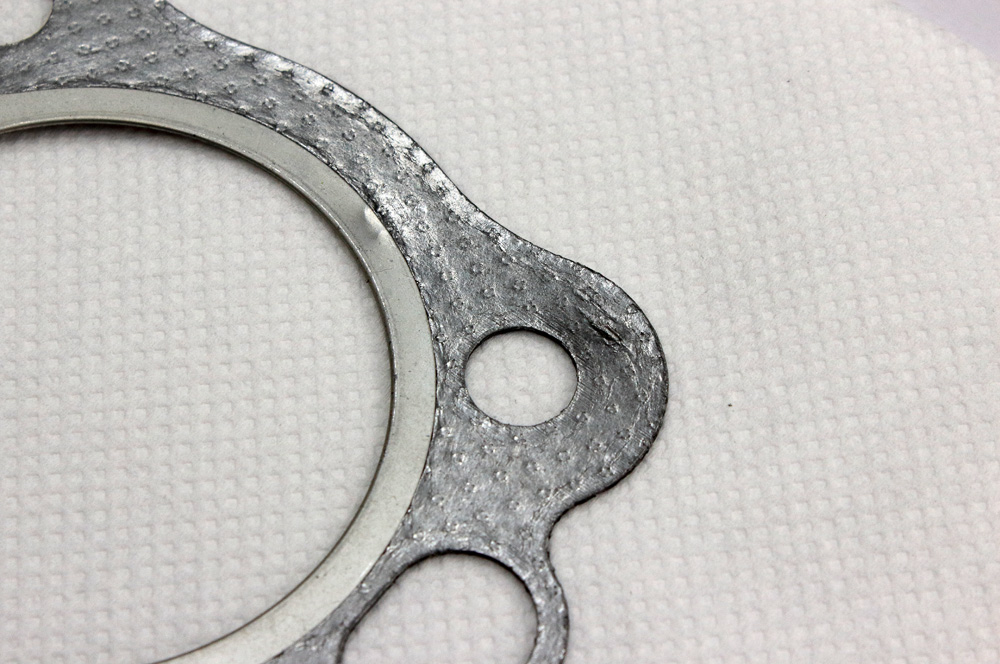 There was nothing in the box that could cause such kind of damage, so the only plausible explanation was that the gasket might have been damaged on the way from the parts warehouse to the MSP facility. From the type of damage I could make a guess that another part was placed upon the upper face of the gasket and it wasn’t fixed very well, therefore during the transportation it made two dents on gasket: one on the metal ring and one on the “soft” area beyond the hole for cylinder stud.