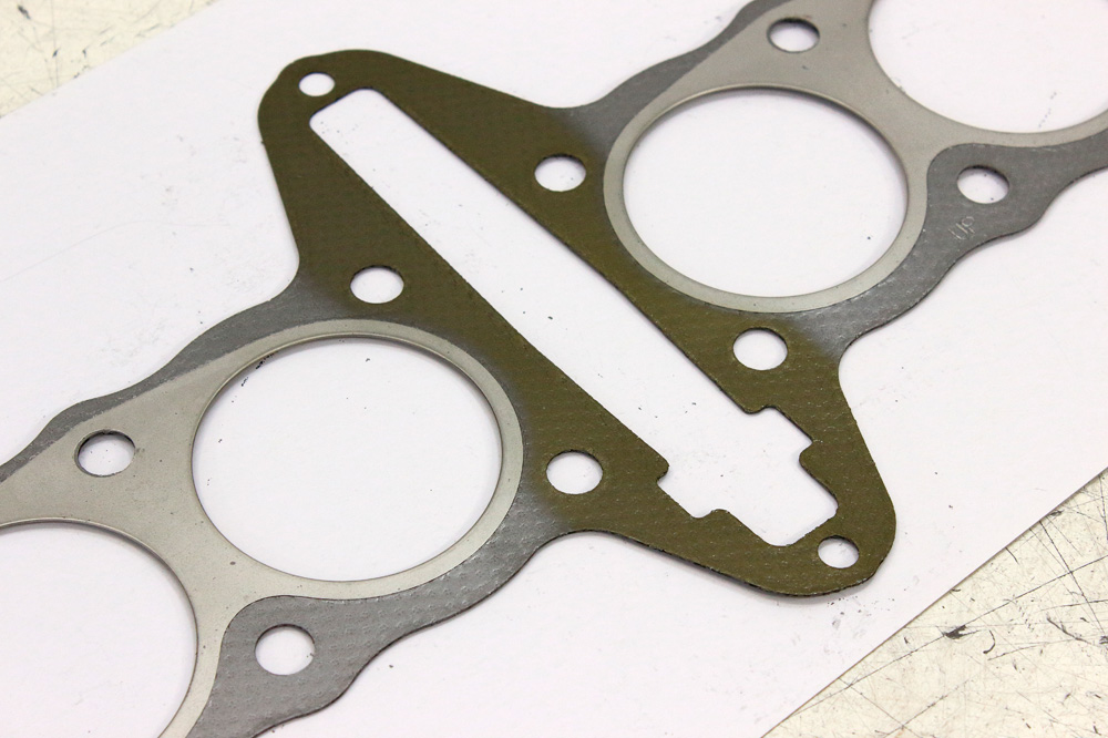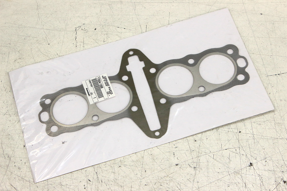 I ordered an OEM cylinder head gasket instead of what comes with a Wiseco piston kit. The part number of this gasket is 11004-1268, and being part number for KZ750 cylinder head gasket it also superseded KZ650 cylinder head gasket part numbers. I ordered gasket from MSP webshop , which lately became my favorite source of OEM parts due to their fast shipping combined with reasonable pricing and shipping fees. Soon my order arrived. It was perfectly packed, but when I opened the box I immediately noticed that the gasket had minor damages. They were visible through original packaging of gasket: