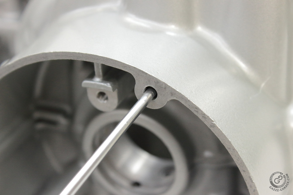 All threads of the Kawasaki KZ650 engine were cleaned with “special” bolts before glass beads blasting and painting. However, since I didn’t screw bolts into the alternator and ignition covers’ mount holes, I had to use it once more along with a section of remote control antenna (mounted to the nozzle of air gun).