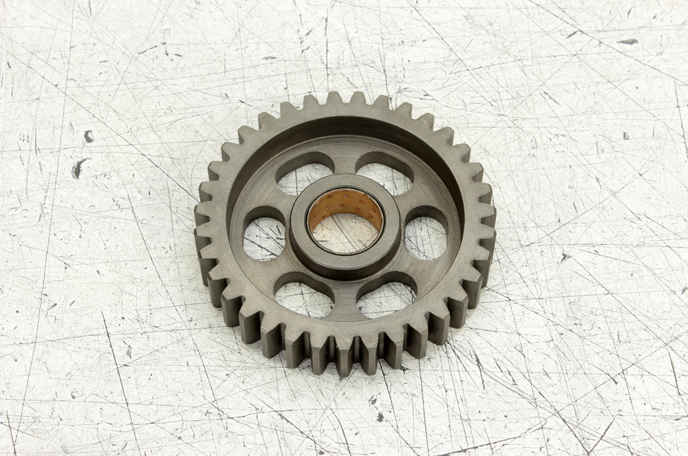 Another item in my list of preassembling works was final transmission assembling. When I was cleaning and checking gearbox, I found out that it’s condition was perfect, the most of measurements were well within not only service limit, but also within “standard” range. The only thing that was without specs was diameter of copper bushing of first gear on output shaft. I received new gear long ago. Here are new and old gears side by side. The stuff on new gear is not rust but remains of factory applied preservative oil.