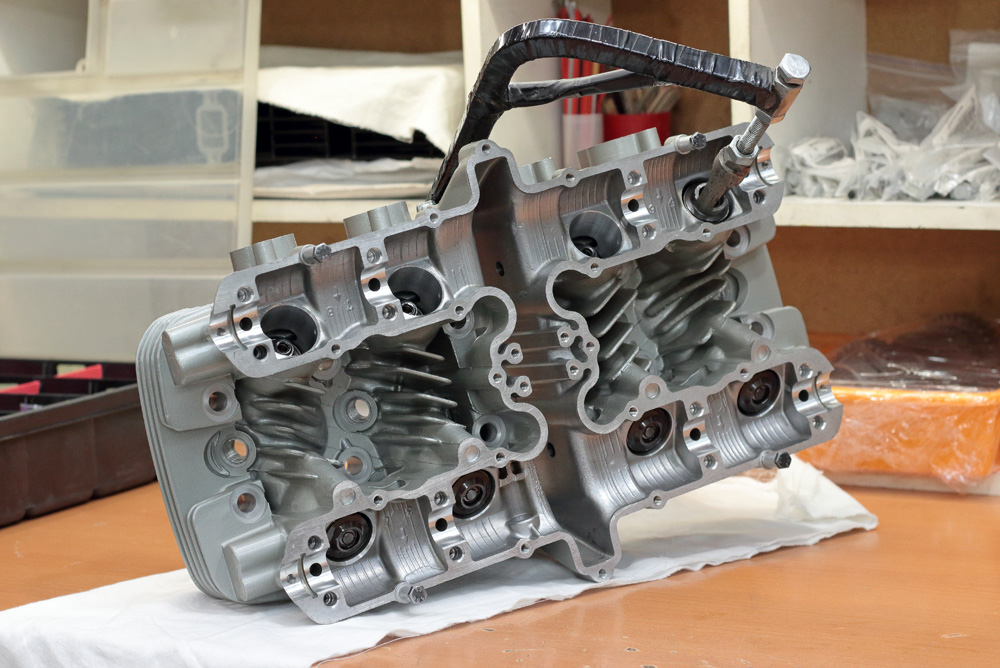 Cylinder head assembling is a simple process and with only eight valves per head it was finished in no time. It seemed that you only started: installed all lower washers and seals, took the first valve…