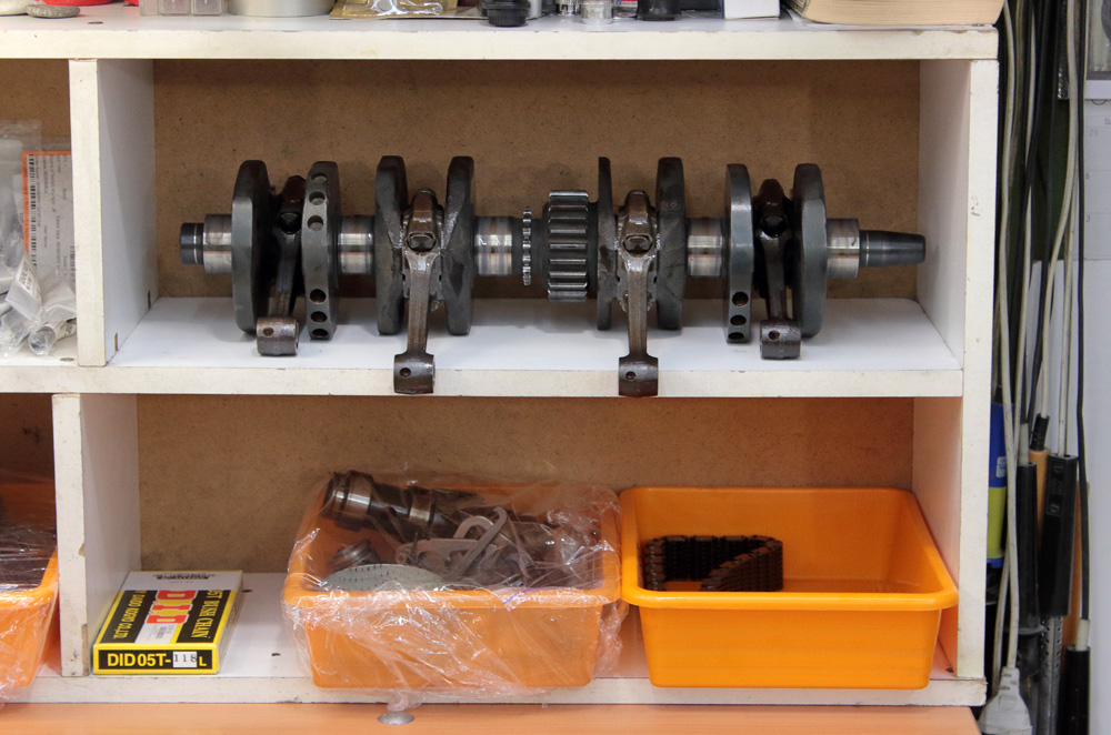 I tightened connecting rods’ nuts with the crankshaft installed in the upper half of cases. Then I returned the assembled crankshaft with conrods on the shelf for a short time.