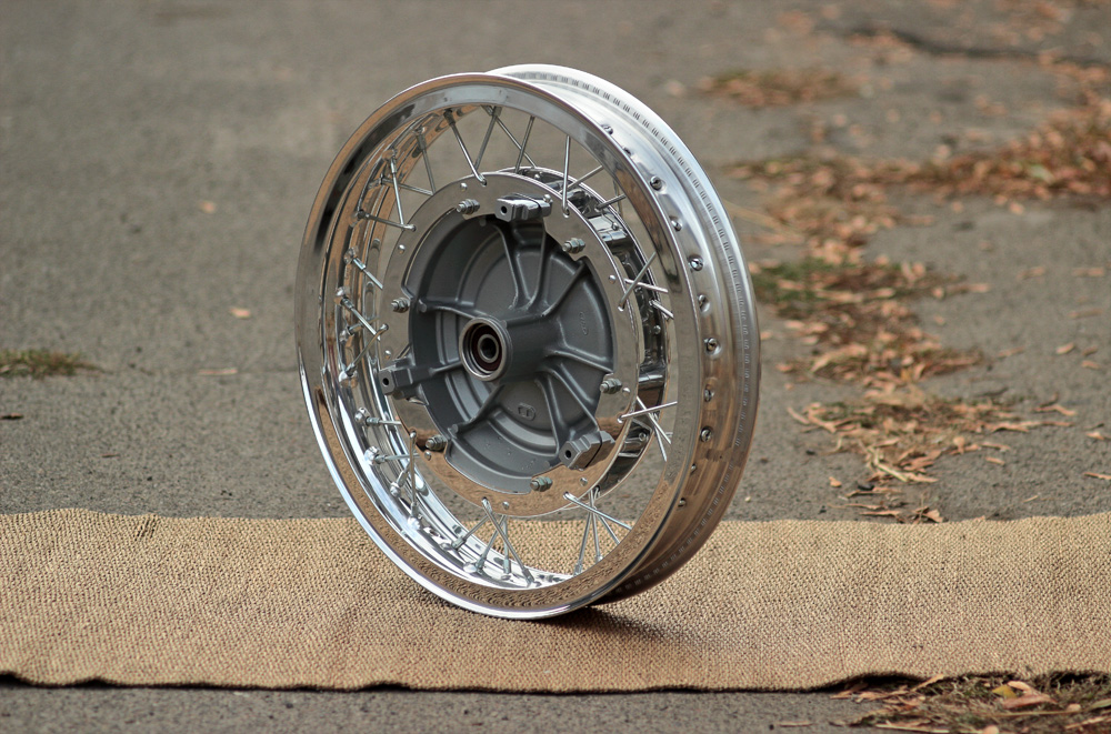 So, what should have happened in June happened only in September. Yesterday I finally finished rear wheel. I placed second order for Excel 18″ 2.5″ high shouldered rim as soon as I became sure that first perfectly fits modified hubs of Honda CBX550. Central Wheel Components, UK, fulfilled my order very fast, only few days after its placing. Unfortunately, parcel with second rim arrived into Ukraine in the midst of vacation season, August. It cost me three (3 !) additional weeks of waiting, including two weeks of customs clearance. To release parcel which price exceeds customs limit receiver has to pay tax. I had to call customs three times just to get from them that amount of tax.