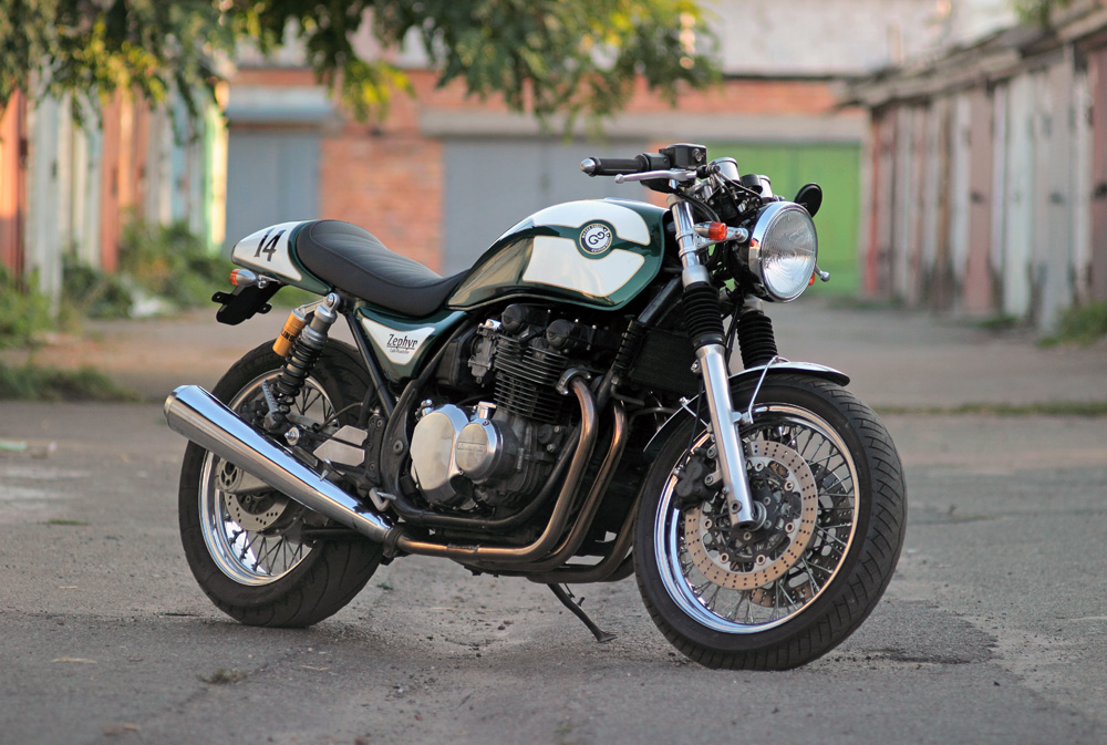 This is Zephyr of mine. To turn it from "original stock" Kawasaki Candy Atlantic Blue paint to project' green color I used spare set of tank and side covers. Thus, this very day my Zephyr still wears its "original stock" painting.