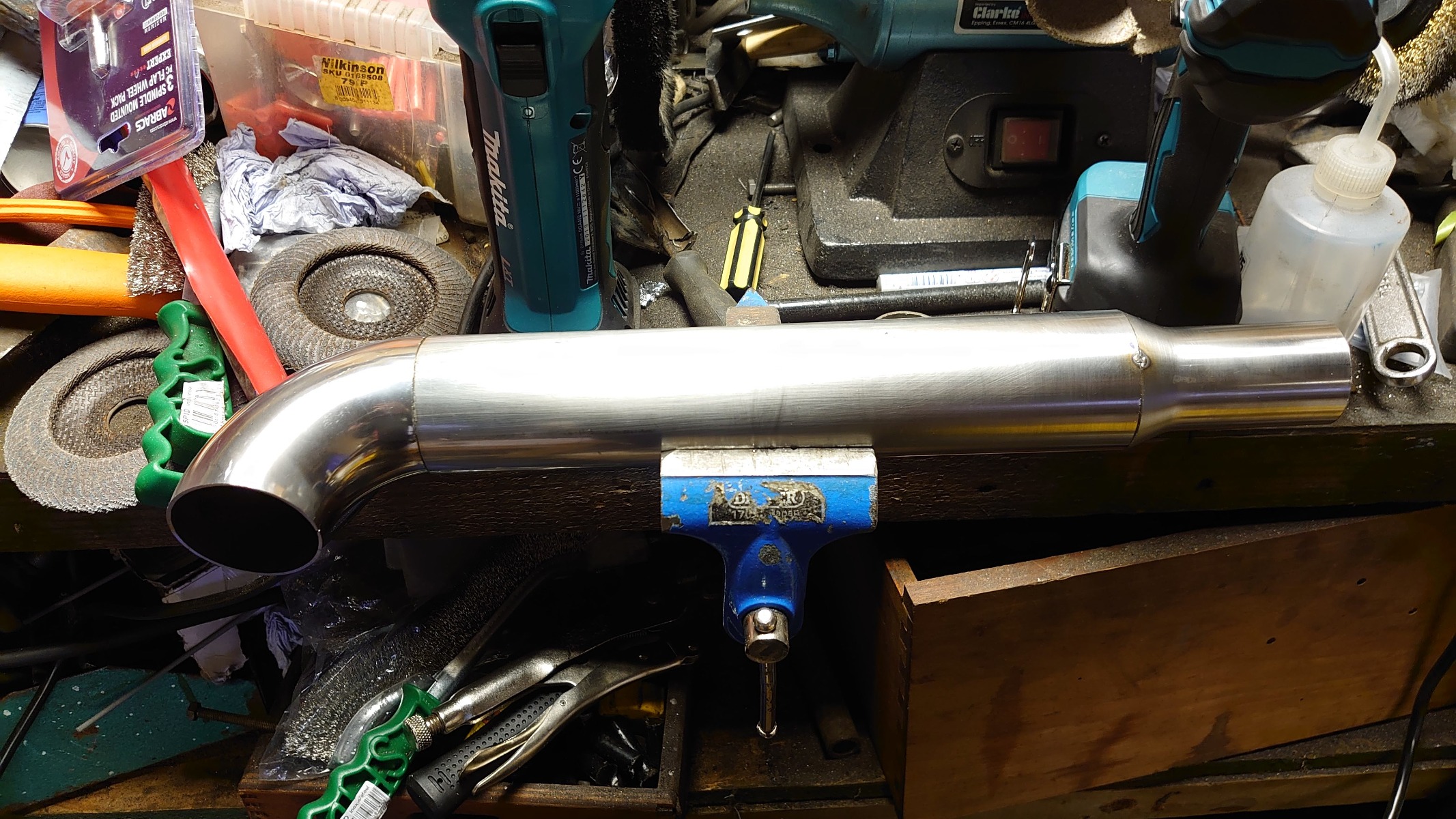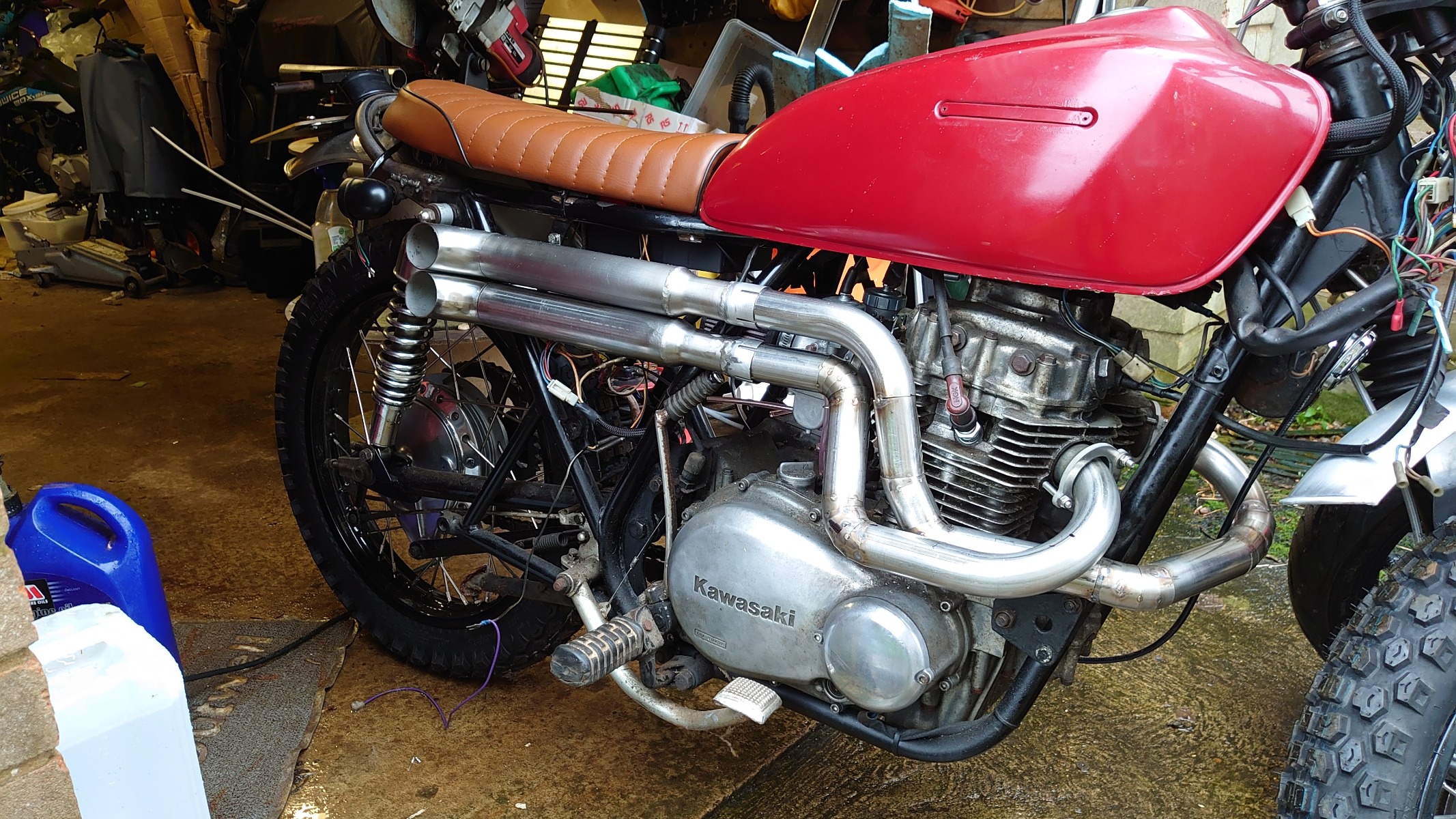 Finished welding the exhaust, started the bike and it sounds great (if a little loud). Time to tear the bike down to get the frame painted.
