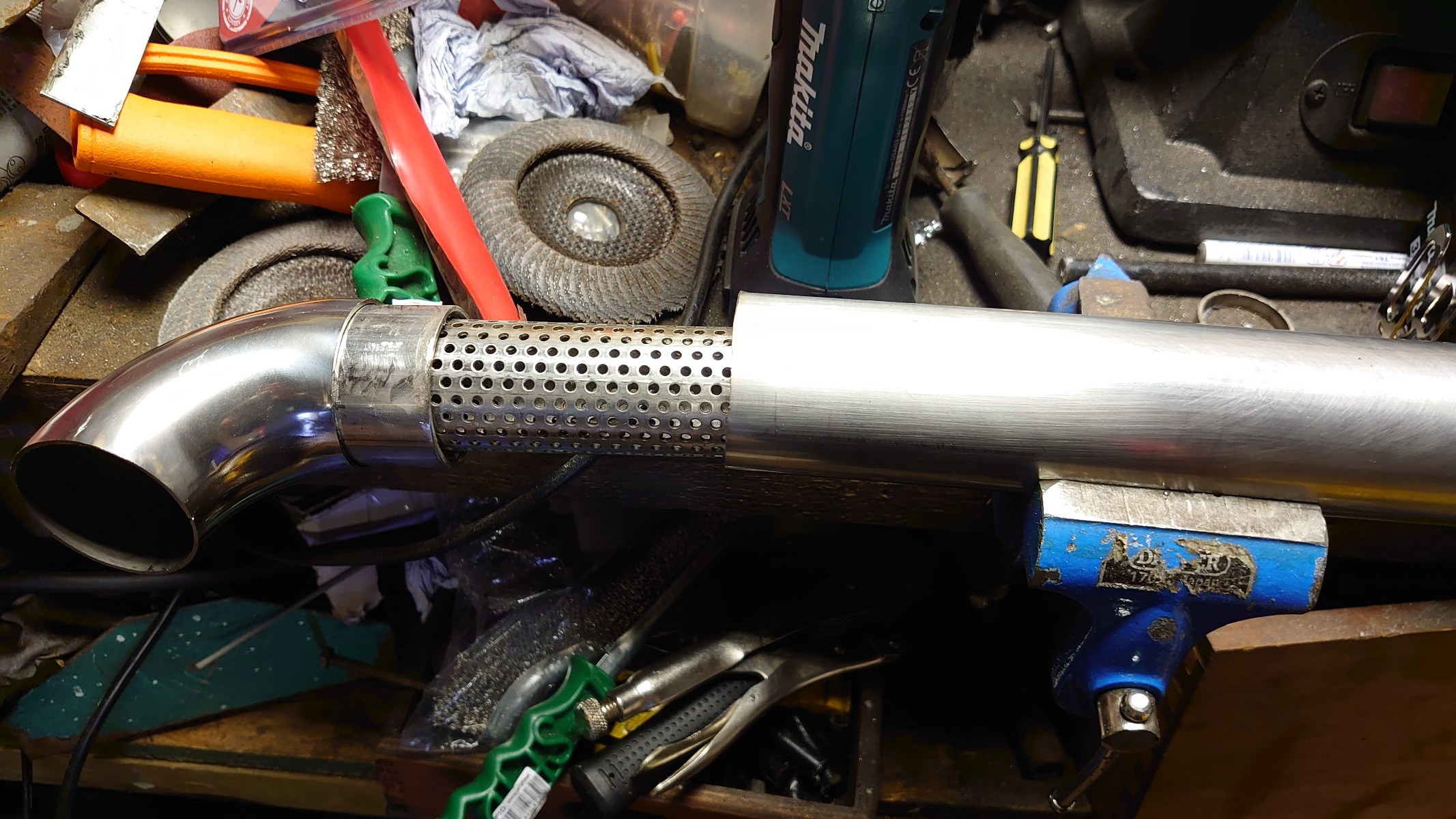 Photos showing how I made the silencers, exhaust wadding will be wrapped around the perforated tube to keep the sound level down a little (I hope).