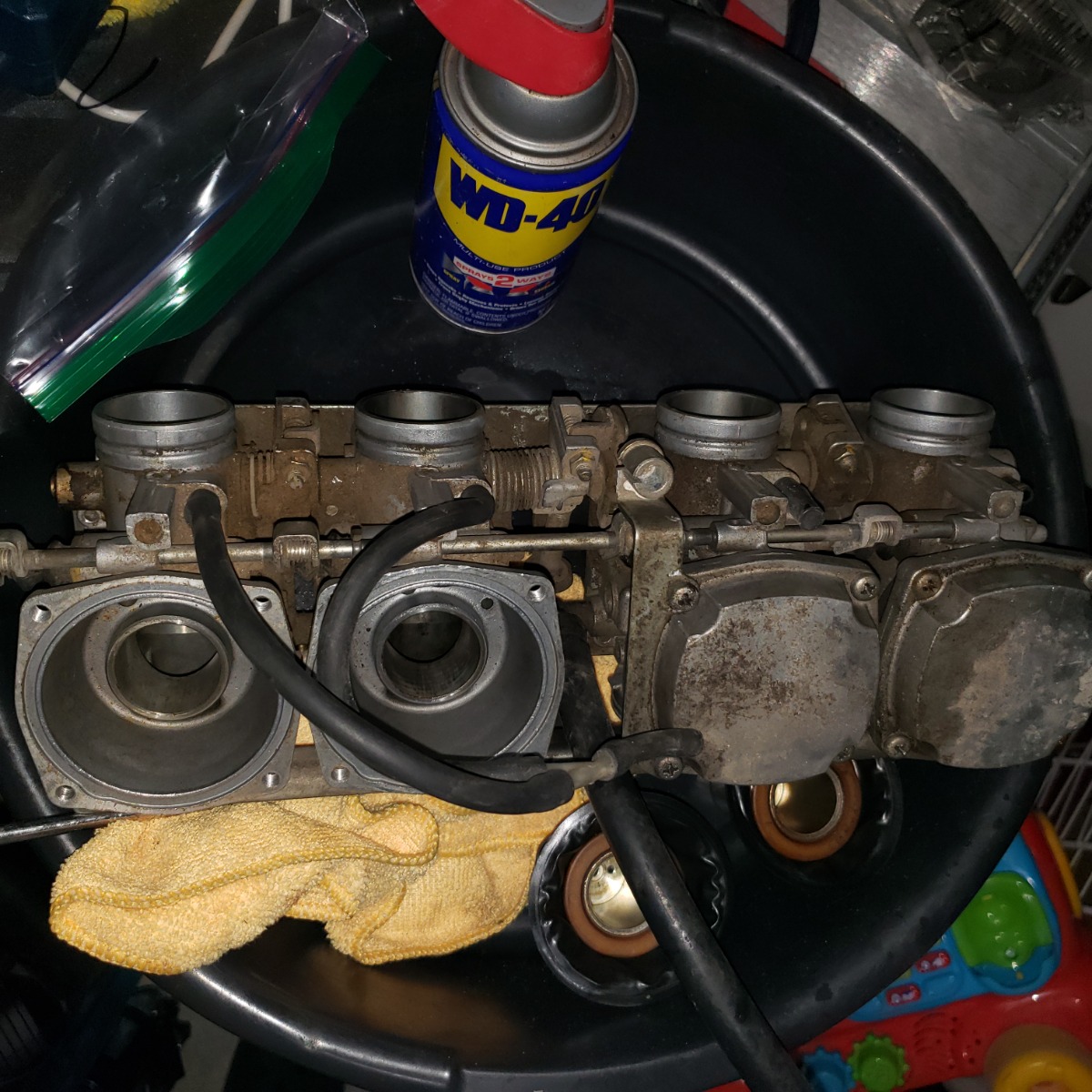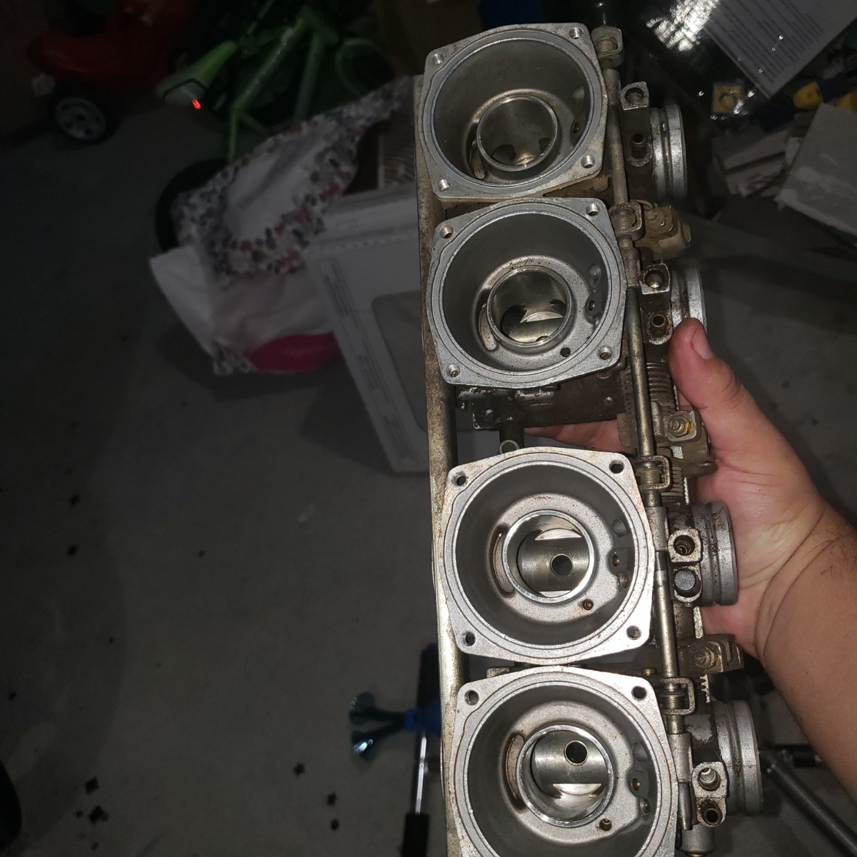 Your carbs do look pretty good after the external cleaning. The enrichment booties also look to be in good shape, be extra careful with those, since that little piece of rubber is still available, yet pricey when sooo many other parts need replacing.