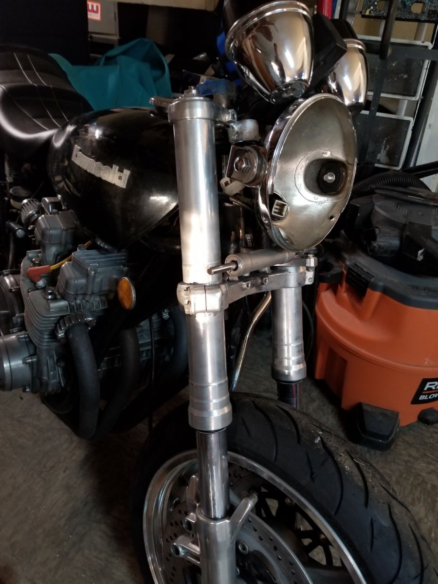 I welded brackets on the upper tree and a steering stop / steering damper bracket.