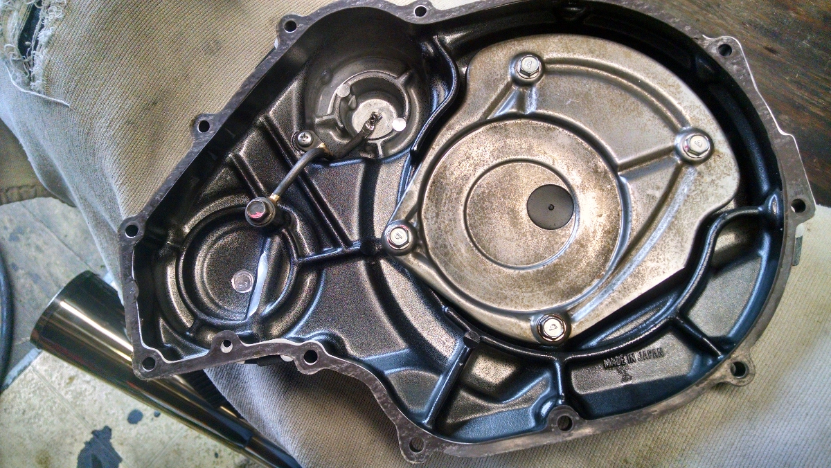 The alternator shaft nut is not the only thing to spin it's self off. I assume this is because the last person to assemble this did not clean the threads and use loctite to hold these fasteners in place. The crankshaft bolt also spun out and sat there eating it's self against the right cover. Both leftie loosie (RH threads) with the crank spinning clockwise would spin them both off, and they DID.