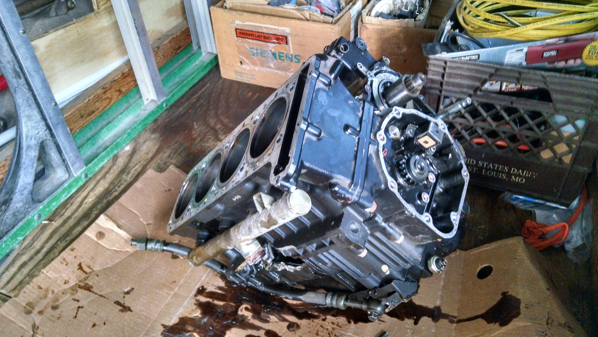 The original motor is still intact with just the pan, jugs and pistons removed.