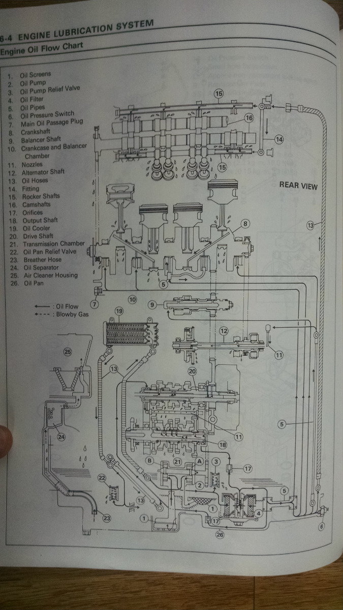 Another slow day, so update.. I started dissecting the blown (engine spare) with the extra special crankcase ventilation system. :pinch: I have not fully figured out this 2 pump, ultra complicated, engine lubrication setup with the (2) pumps - left and right georotor pumps. In glancing over the diagram in the OEM service manual, it's no wonder that this engine might have some lubrication issues. What a freakin mess, tubes, o-rings, mismatched passages, and a bunch of orifices to plug up at any given moment :woohoo:
