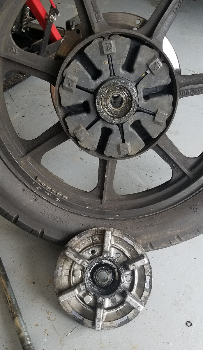 12 Sep 2019 15:53 - 12 Sep 2019 15:54This is exactly what was describing above. I googled sprocket holder and all that really popped up was the dirt bike video plugging a holding tool. Obviously the dirt bike sprocket was barely tight. In using the brake to hold the front sprocket, there is also a rubber damper between the wheel and sprocket that will dampen the impact wrench blows the same way that it smooths out the engine pulses on the chain.
