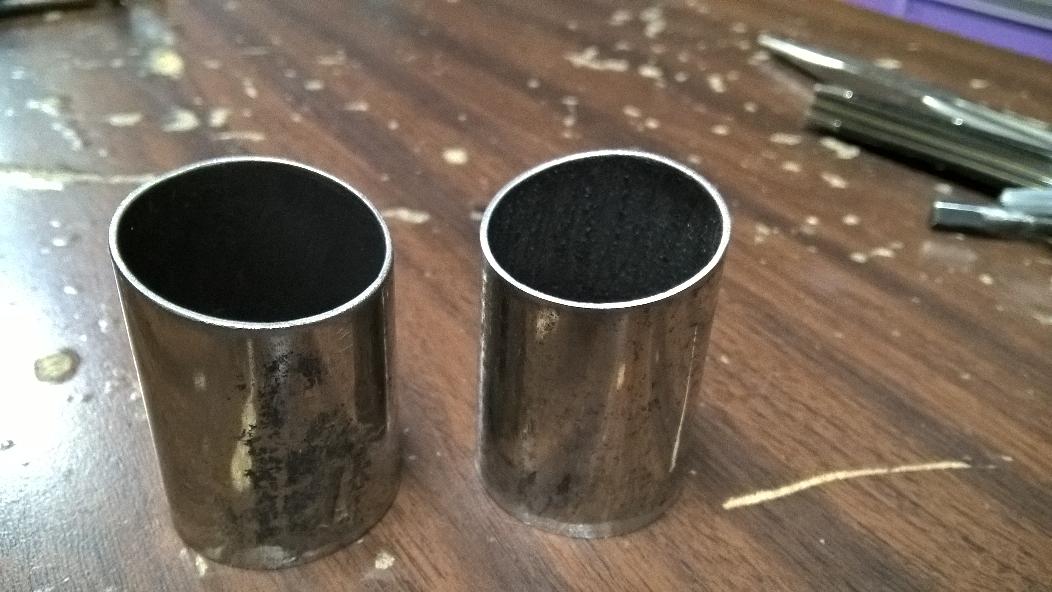 These washers were cut down and filed to be the endcaps of the mufflers.