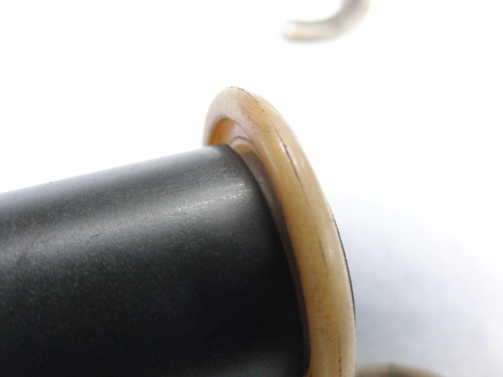 I'm posting these photos to anyone who might want to know what's under the securing rings without breaking them. The slide is machined very thin and then the lip is formed into a "rivet". The diaphragm has a molded-in oring on the lip, which gets sandwiched between the two plastic rings, which lock it in place and provide a smooth, round surface for the diaphragm to form against as it goes up and down. The factory systems is a very good system for longevity, but is not serviceable at all really.