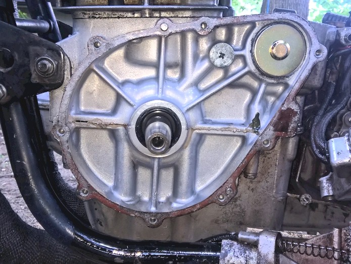 I also noticed a bit of noise from the starter area that sounded as if the engine was somehow still spinning after I know it stopped. So off comes the alternator cover. Here's the problem:
