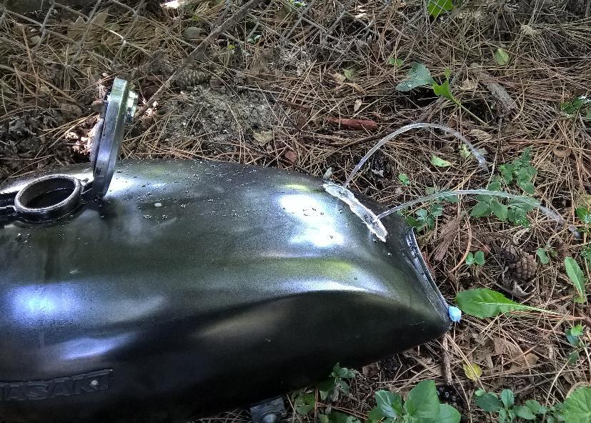 They can't have thought that bondo was going to keep gasoline in, so they knew it was a leak bomb. Or they were just that stupid. I think maybe a combination of both, looking at the whole bike.