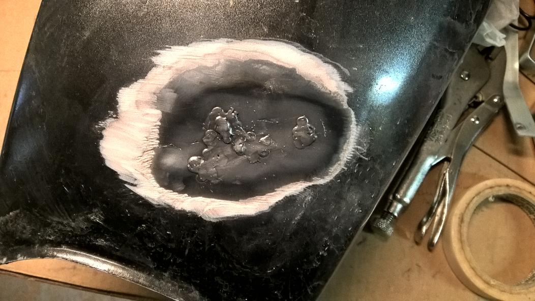 The whole welded area is in a dented area, so bondo will cover all of it when shaped to the normal shape of the tank.