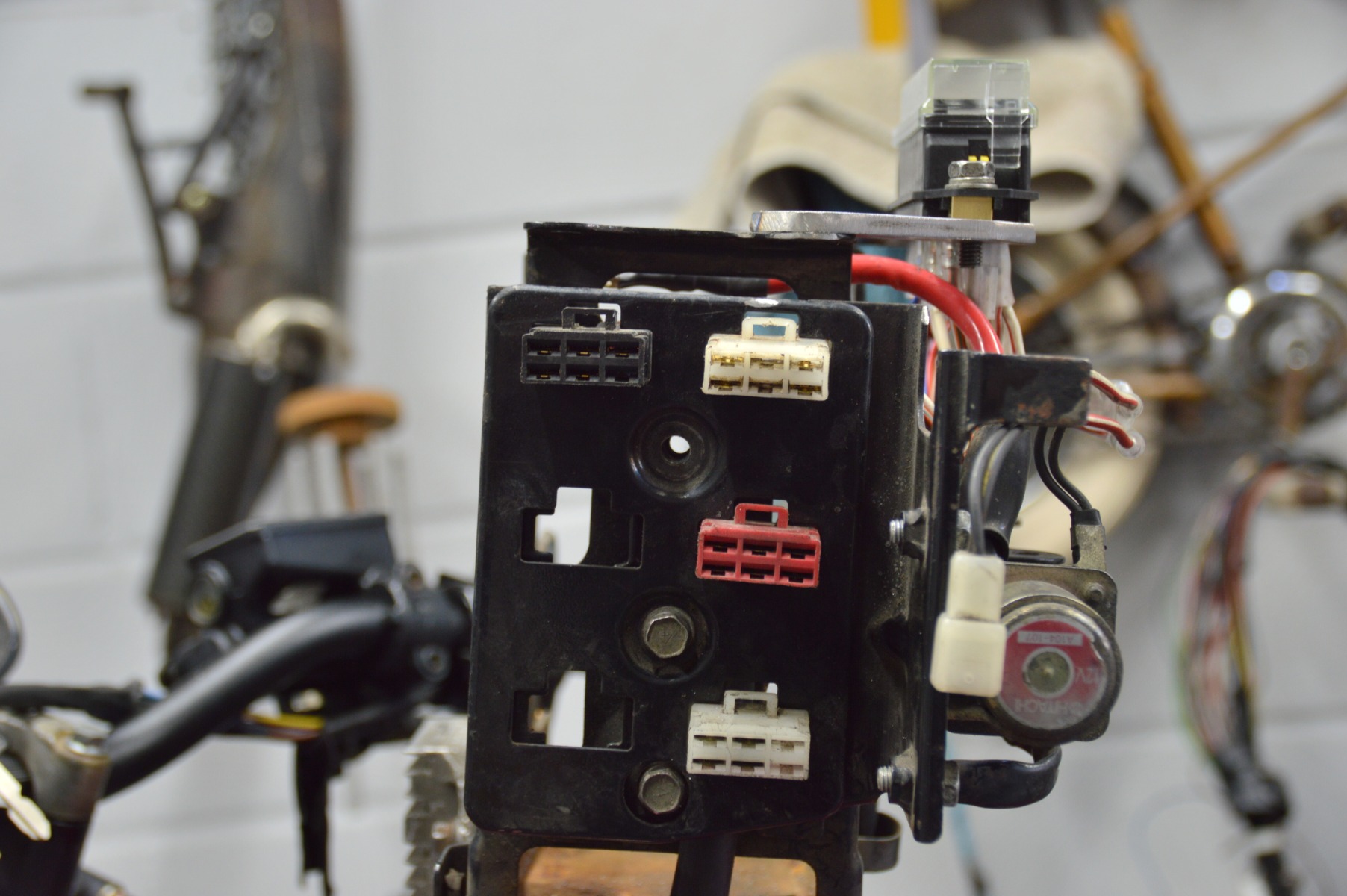only a bit more spagetti to sort out !! newish switches on the way from an ER6 . two relays to wire in for the high/low lighting i should be able to use a larger bulb for the lights