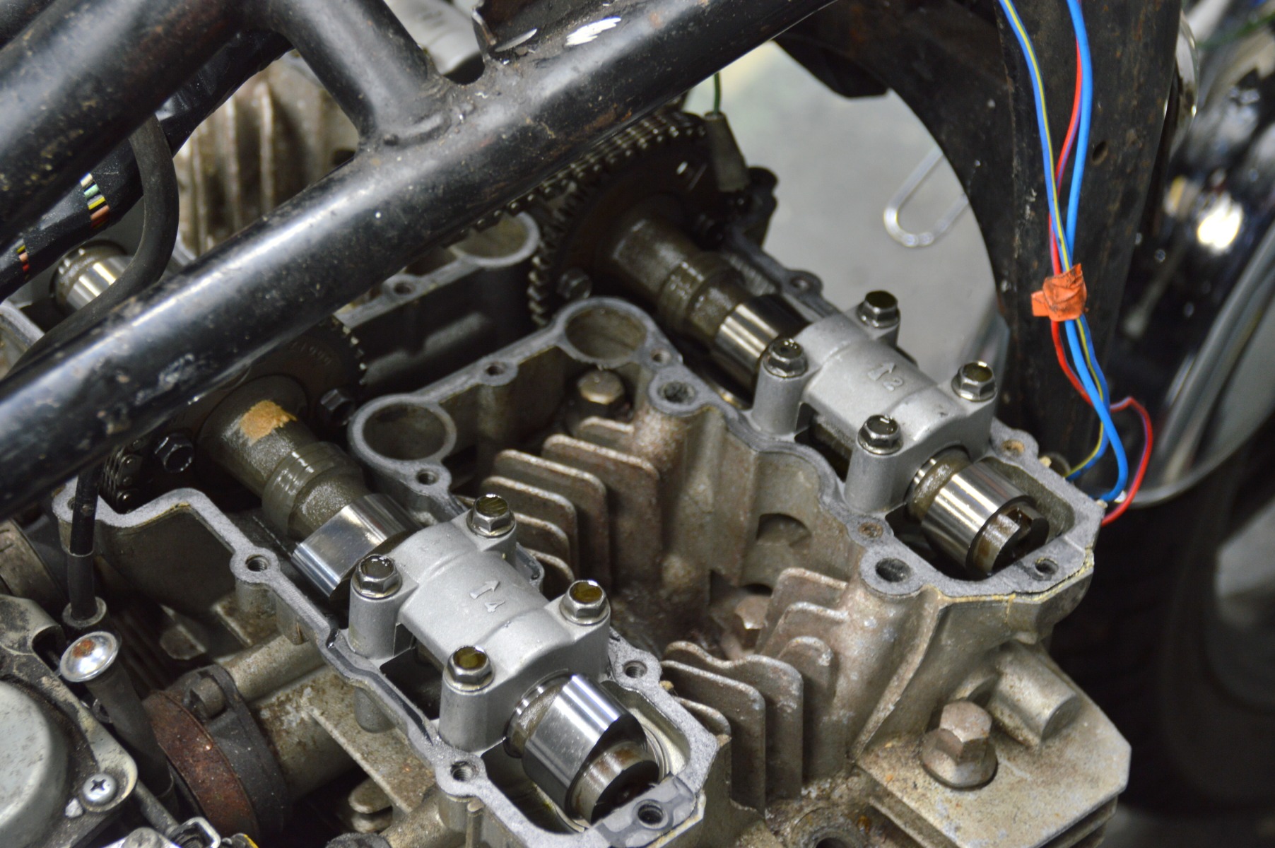 after spending time making the bike look better IMO! i thought it was time to see if it runs , as far as i know it has not been used since 1995 so i was expecting a furry inside to the engine but had a nice suprise when the rocker cover came off,clean as whistle