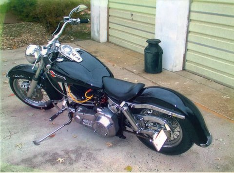 Thats a cool trike KZQ ! I am just extreme, heres a pic of my shovel so you get more of my taste.I don't have any good pics of her finished.Excuse the shit in the back I was moving the basement all around and doing some wiring.
