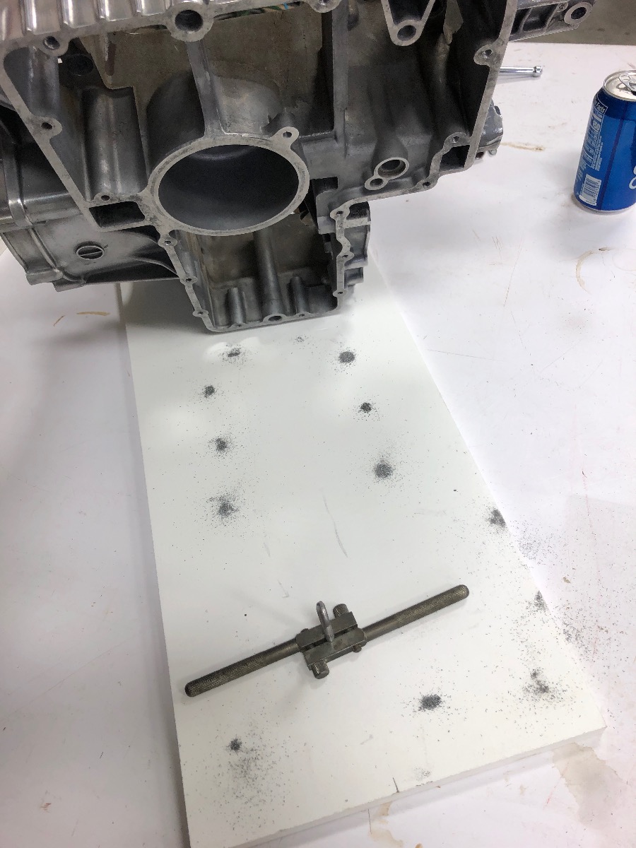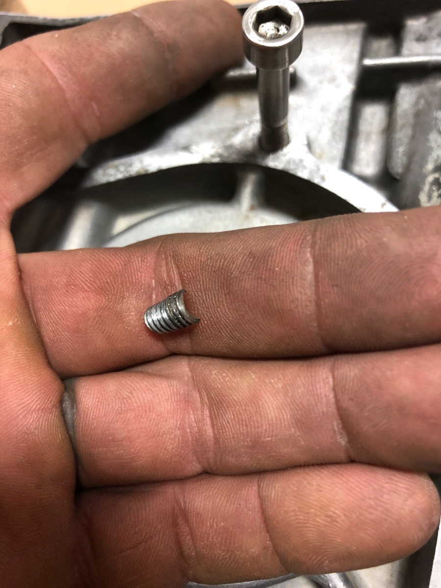 I thought I would start the reassembly right after I took care of the 1 broken bolt. It took saturday from 9am till sunday 1am to remove the broke piece and chase all threads on the cases flush/rinse/repeat. Now I will baby step through it this week.I printed off the instructions from JOE HOOPER on the site, I have the manual next to me as well. Here is a pic of the bastard piece of bolt, out with new bolt fully inserted threads are saved! Wish me luck, beginning my first full rebuild over here.