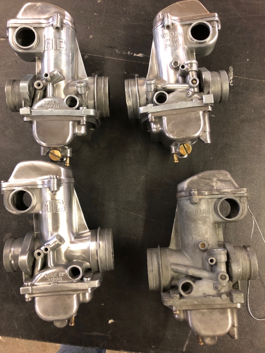 HaHAHa, ya got me laughing out loud on that one! Carbs are degreased again, innards and exterior vapor blasted and all orifices blew out, then 5 min flush and blow out again.I have most the carb parts ready for final hand polish (or paint) and final assembly tomorrow. I always find more imperfections, so I always get everything really good then re blast before final buff. and hopefully engine is in frame by end of tomorrow.