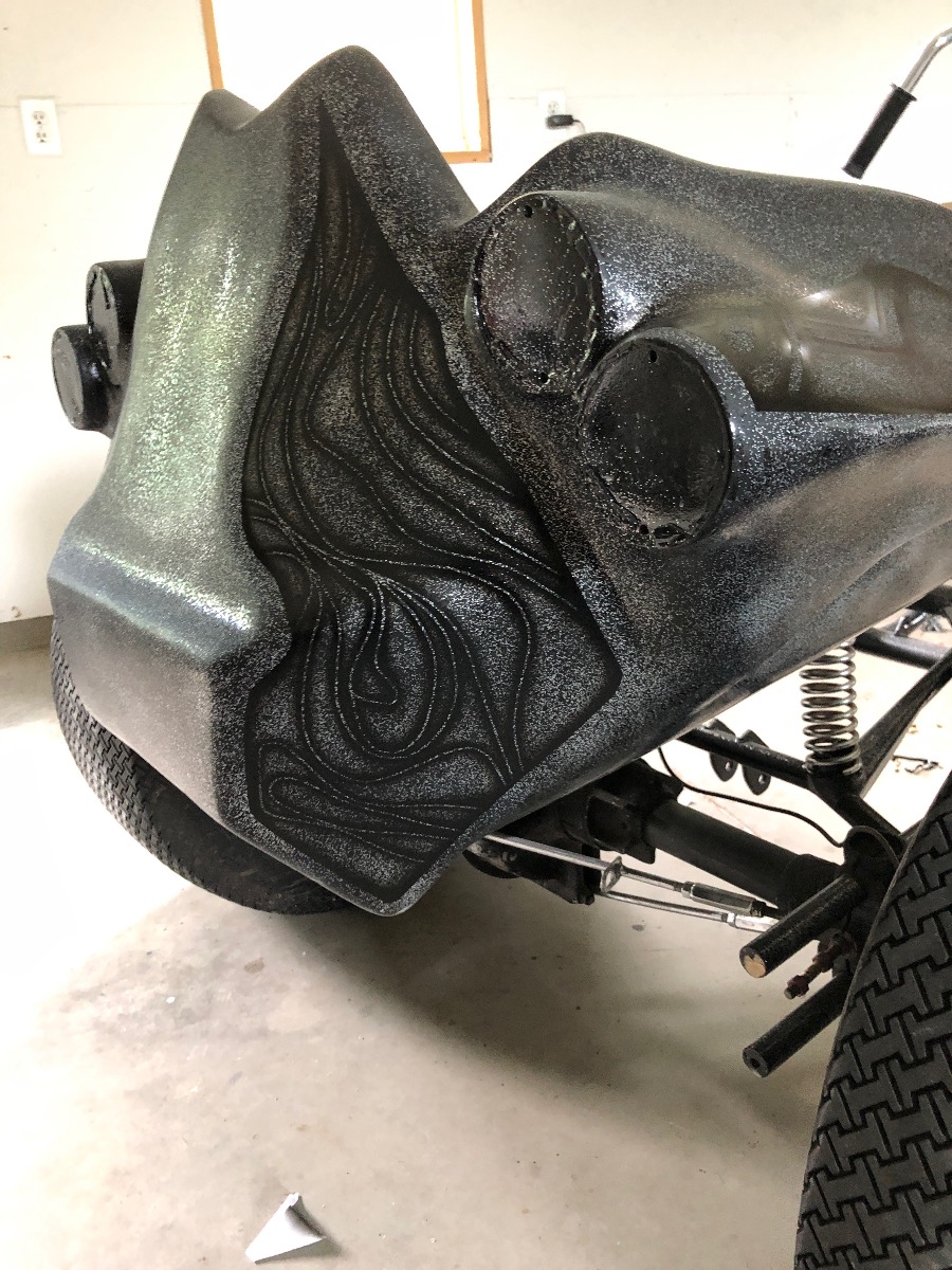 Alright I got the rest of the gold leaf on and will touchup/final topcoat tomorrow night.I got some SHARKHIDE metal protectant and a Cometic bottom end gasket kit and a fresh rebore set of jug/pistons/rings on the way,as the machinist informed me old ones were out of round and 72+mm. Im gonna start asking LOTS of questions soon on the engine board I bet.