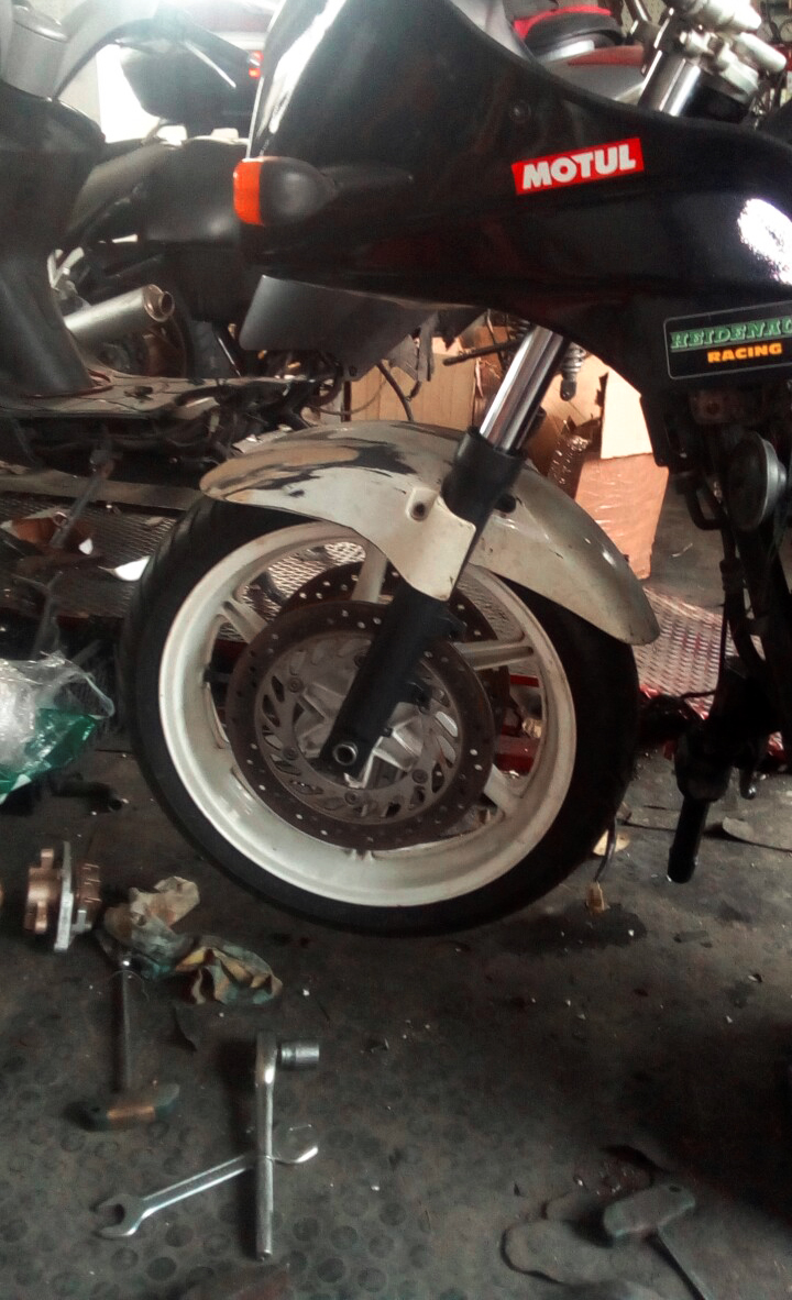 Bought it, and while i waited it to arrive from Canada, i bought a of VFR750 front end, cause I was determined to modernise the handling and the tire availability range.