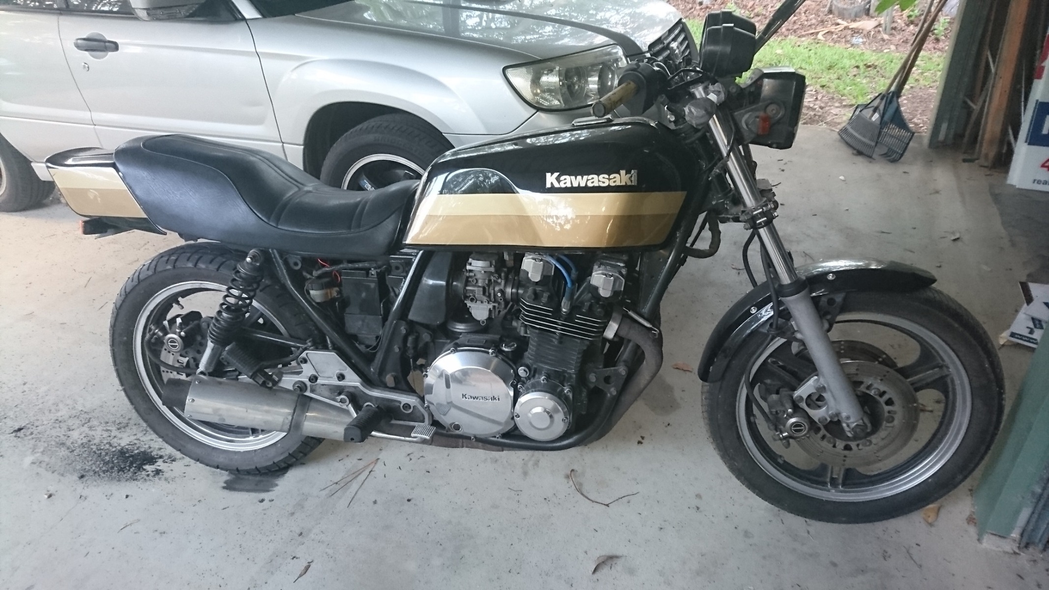 Well that took longer than expected but I got the rego plate last Friday and screwed it on Saturday morning. A couple weeks of late nights etc.Owned this one for 25 years, and its been in resting mode for 15 years.It's been serviced, carbs done, new coils, leads, plugs. Tyres and brake done last week.Rode probably 250kms plus on its first day out no problems.Have a few more photos coming.