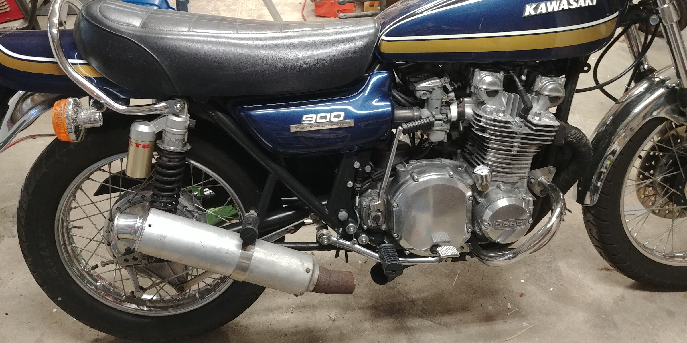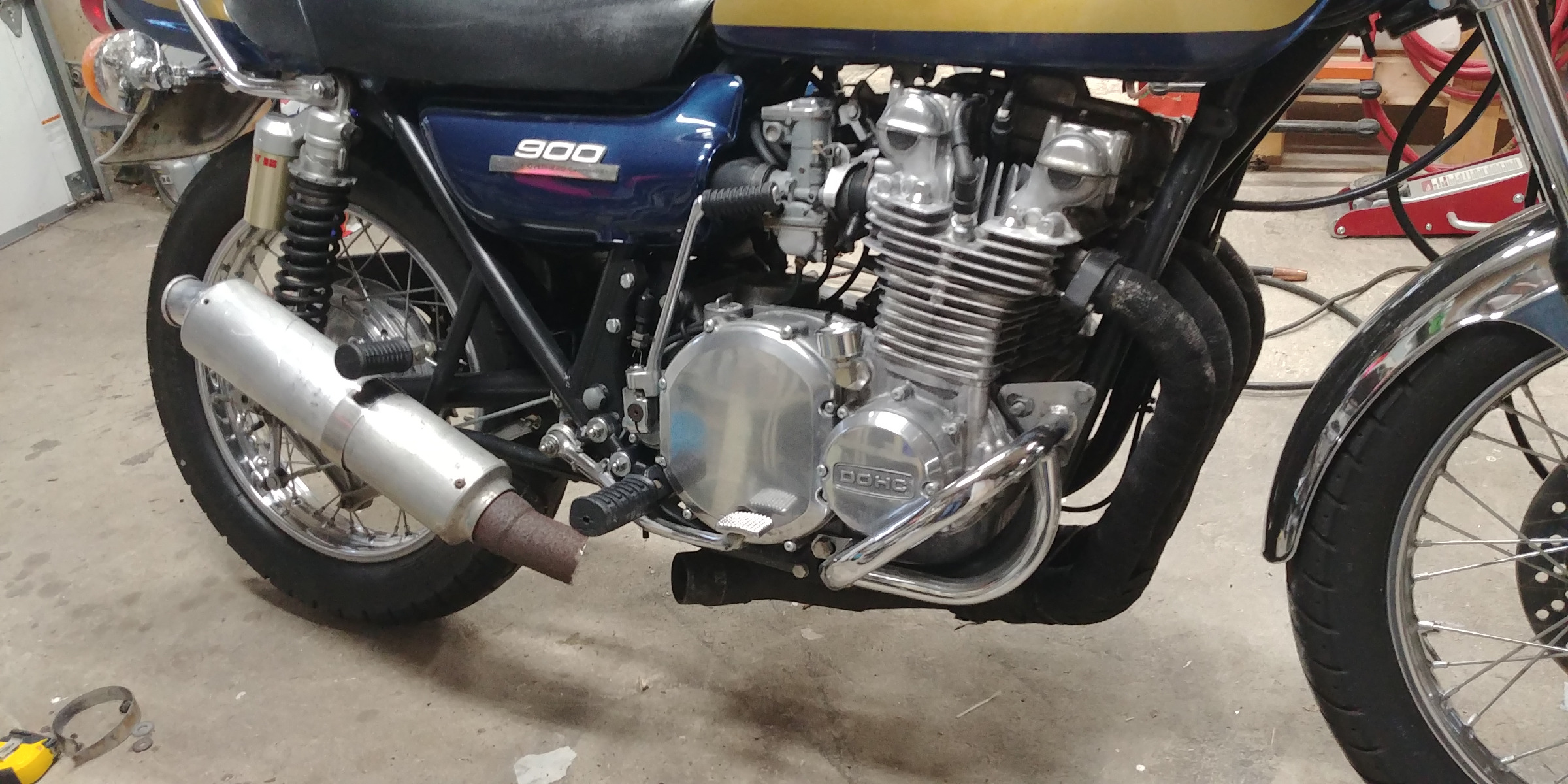 Picked up a header for $50 off Craigslist a couple years ago, have no idea what it is but it was on a KZ900 chopper. Finally doing something with it. The muffler needs some love but it was cheap enough $30 shipped.