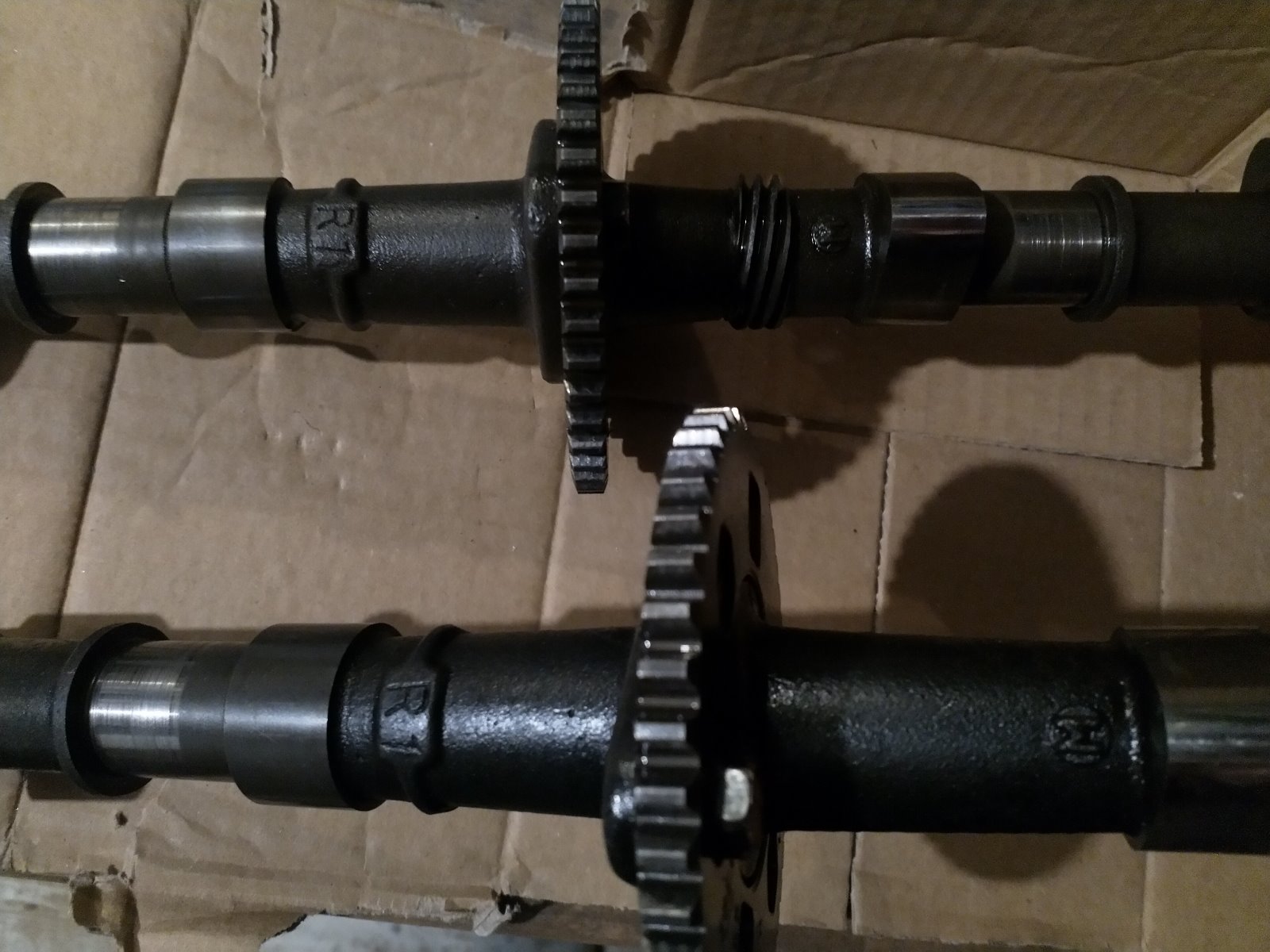 Need some help on this one. Apparently, the cams have been swapped out on this bike. I can't confirm this as this is the first KZ I've taken apart (first bike for that matter). I checked the cams and they have a capital R (exhaust) and S (intake) stamped on one side and a capital M in a circle as well as R1 stamped on the other side. There are no other discernible markings.