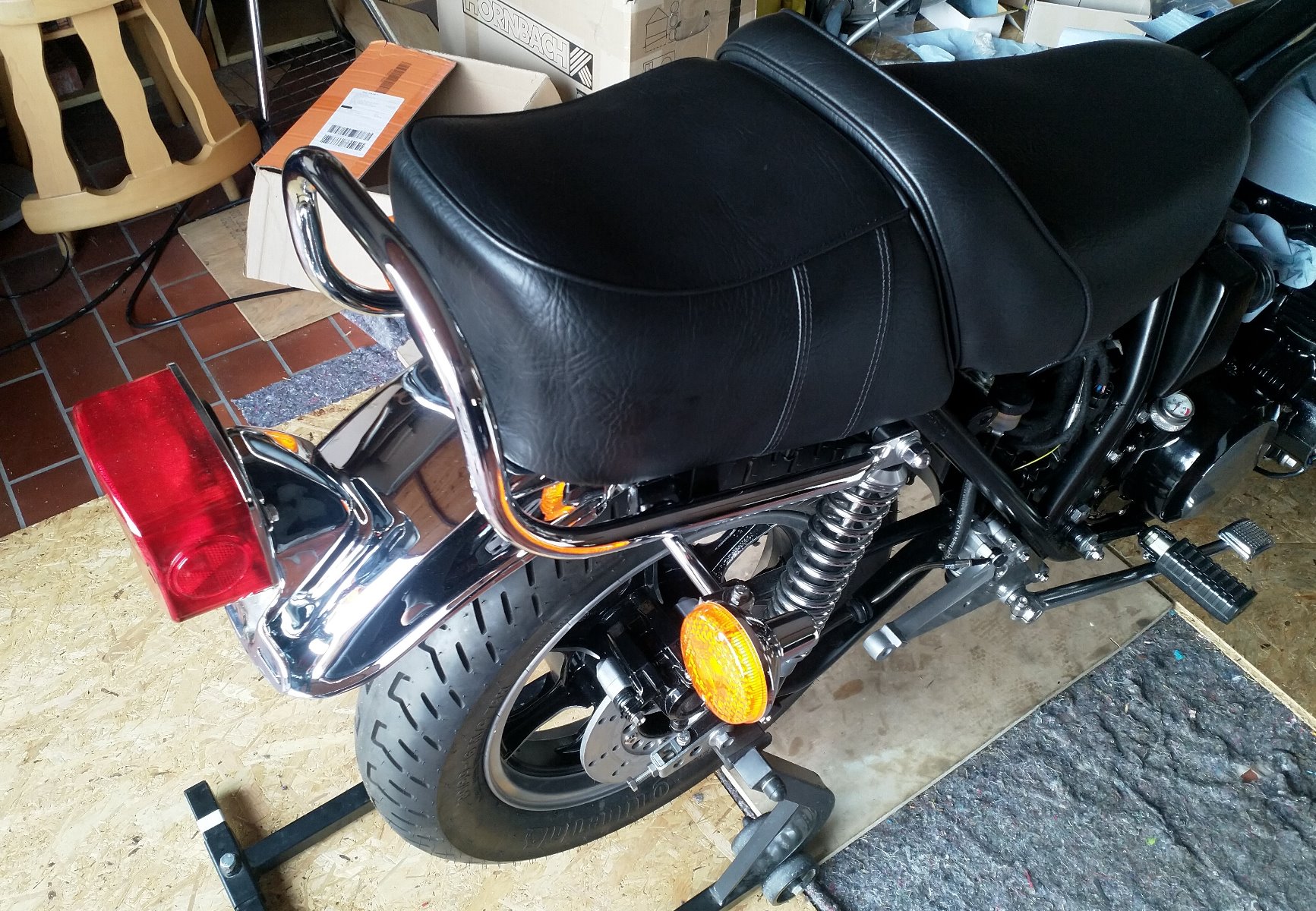 Got the grab rail, chain guard and pillion seat on as well. Rear mudguard and tool box have had a coat of paint recently too (cause that's what everybody looks at :dry: ). The front seat is just sitting on the frame in the picture - I still need to mount it properly.