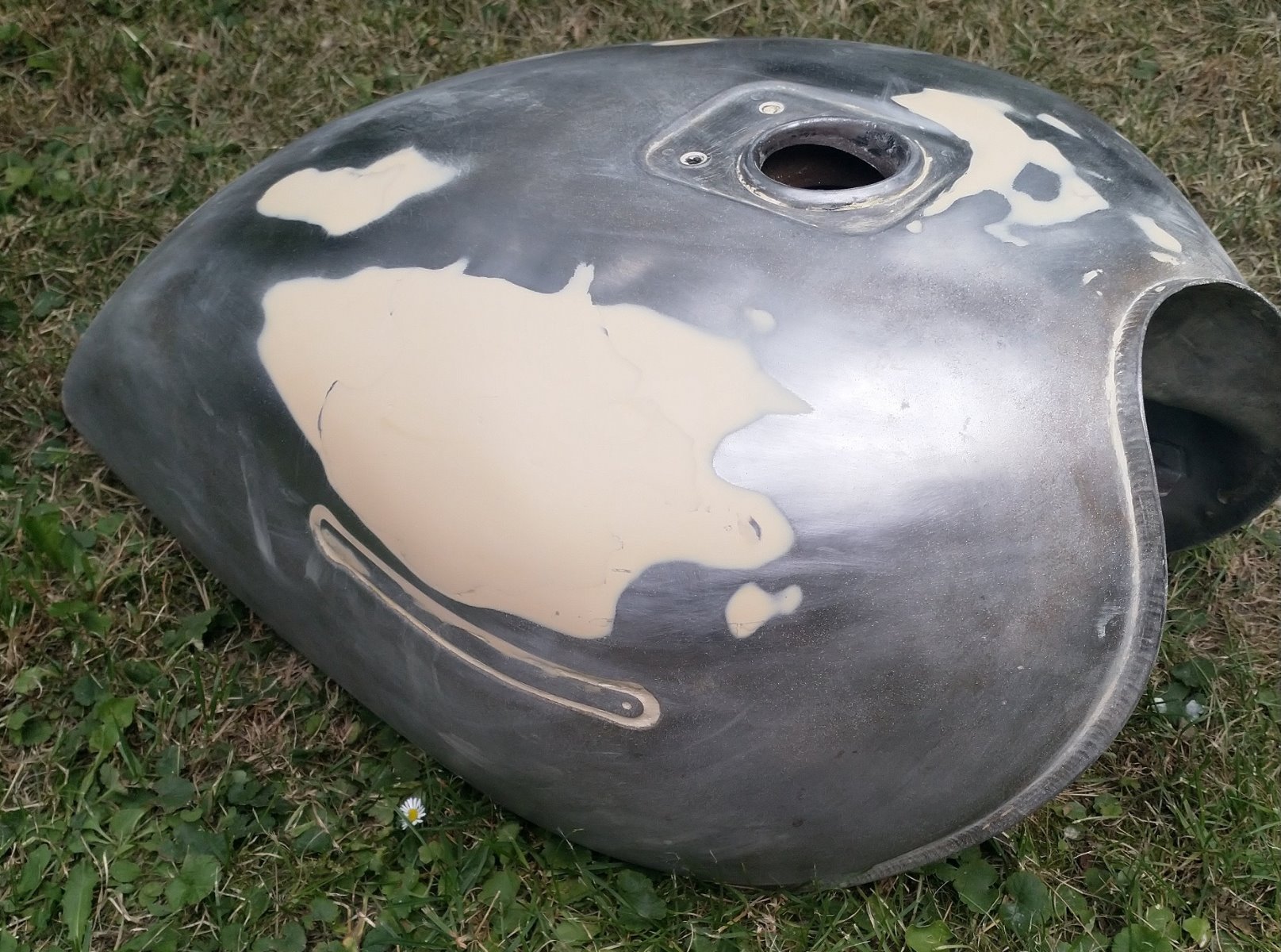 Some of the old filler even survived the sandblastng. I just filled it again last summer, primed it and have let the new bog settle. Now I just need to do a bit of touch up work.