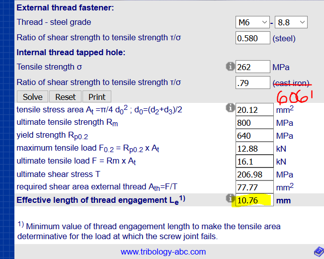 Thanks guys. I'm wondering now if I should pull out the helicoils that are already in and replace them with longer ones. I put 1D inserts in (only had 1D and 3D and the 3D ones were too long). I've got some 2D ones on the way. I figure with the increase in diameter (for the aluminium threads) the 1D inserts are probably equivalent to having about 1.25 times diameter in a normal M6 thread. Thoughts?