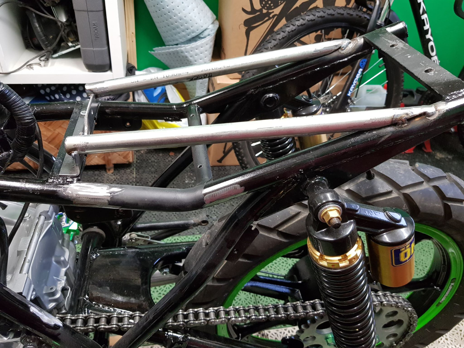 In January it was time for the paintjob. First i painted it kawasaki 777limegreen.