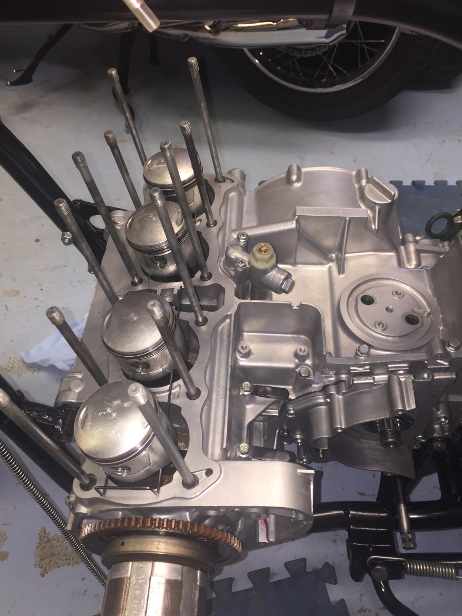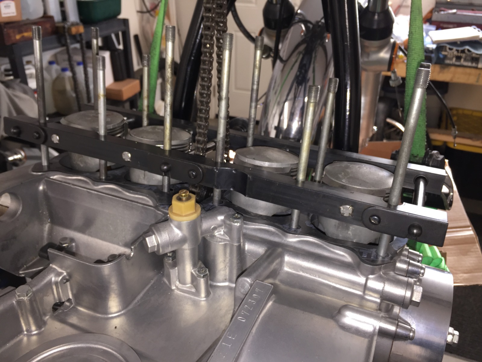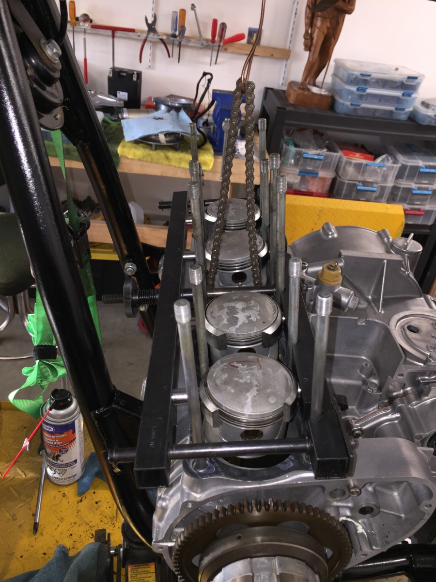 The piston installing tool works very well, but you need a different one for a 1000 vs a 900 due to the different piston size. It takes a few minutes to set up but it only takes a few seconds to drop the cylinders onto the pistons. Attached photos show one I did last week. Notice that I did not have the wires under the pistons when I took the photos but they are necessary to hold the pistons upright before sliding the cylinders on.
