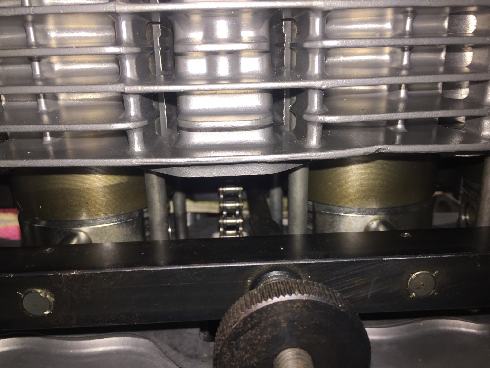 Cylinders are all the way down and tensioner and oil bypass are installed.