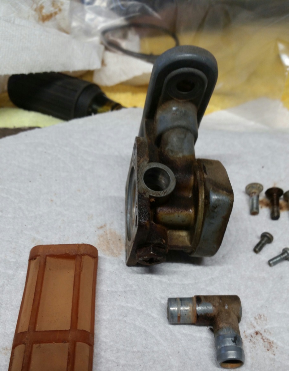 The petcock needs work. The insides are shiny and not pitted, and the gaskets are probably reusable, though I know a rebuild kit is cheap. There are 2 other issues- the fuel outlet piece has separated, and the screen on the standpipe is brittle and broken. I can probably press in a new brass outlet fitting, but can not find just a new pickup screen anywhere. I went ahead and bought a cheapo eBay 44mm petcock for now. I will try to put the new screen on the old petcock down the road when I rebuild it. My goal right now is to get the bike running to address any issues, then go back and make it ride-able and purty.