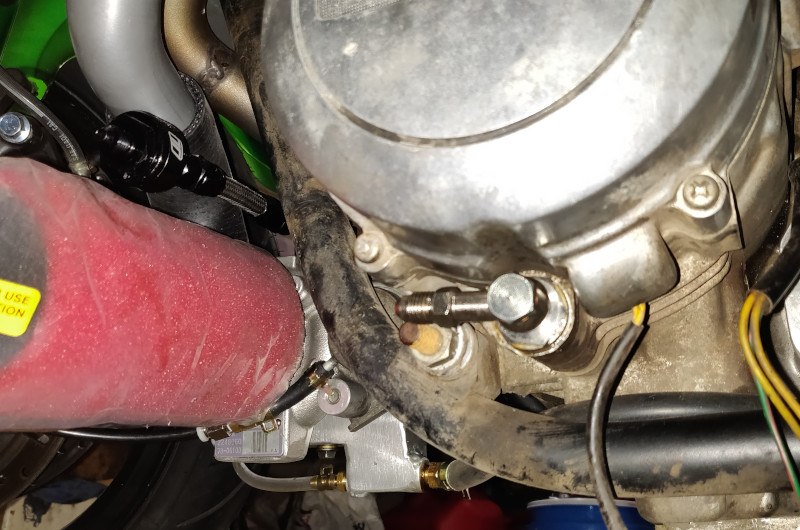 I played with one more turbo oil feed setup. Its a m18x1.5 to m10x1.0 bushing with a M10 to 4an banjo. This is lower profile but it would still get hit if the bike falls over..... So i'm keeping the old setup.