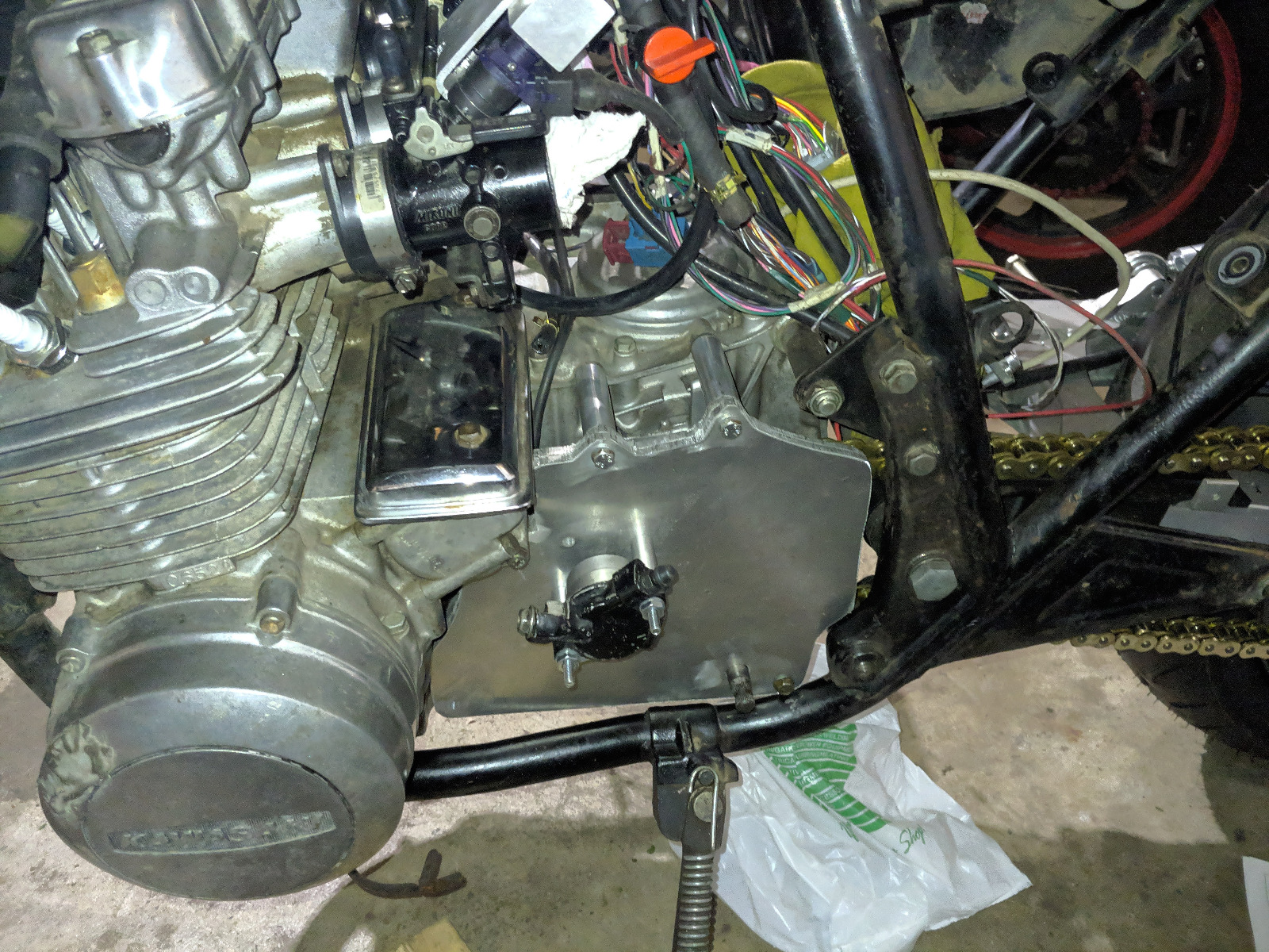 Zephyr 750 shocks installed. ride height is pretty good, but the front forks still need to be extended 20mm.