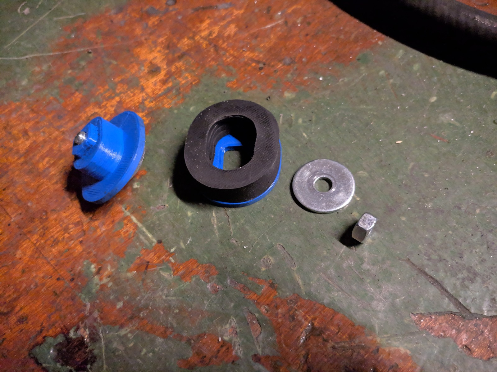 Completed washer assy. will need to make the blue plastic bit out of aluminum.