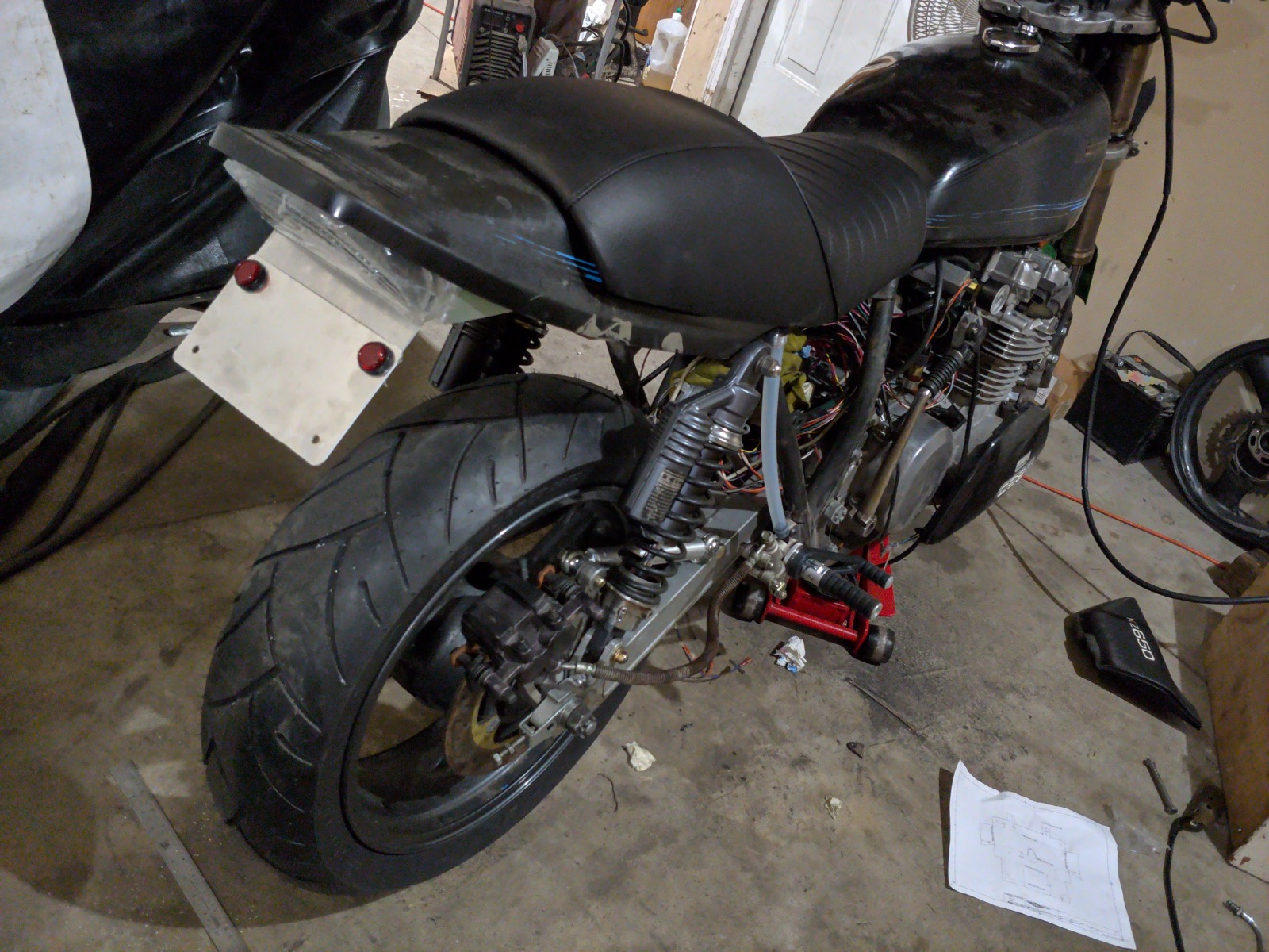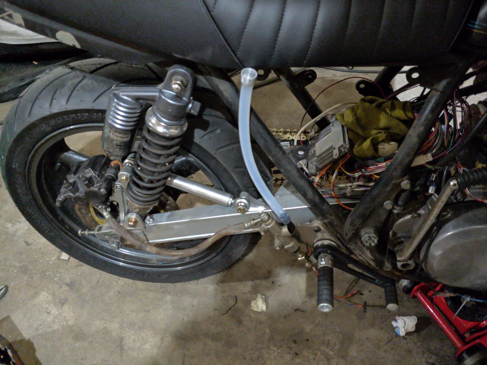 It's basically ready for a test ride now that the hydraulics are taken care of, but the EFI still needs some tinkering. I need to wire in the new MAP sensor and get the airbox on before playing with the tune again. I could put the carbs on but ehh i dont have a stock airbox.