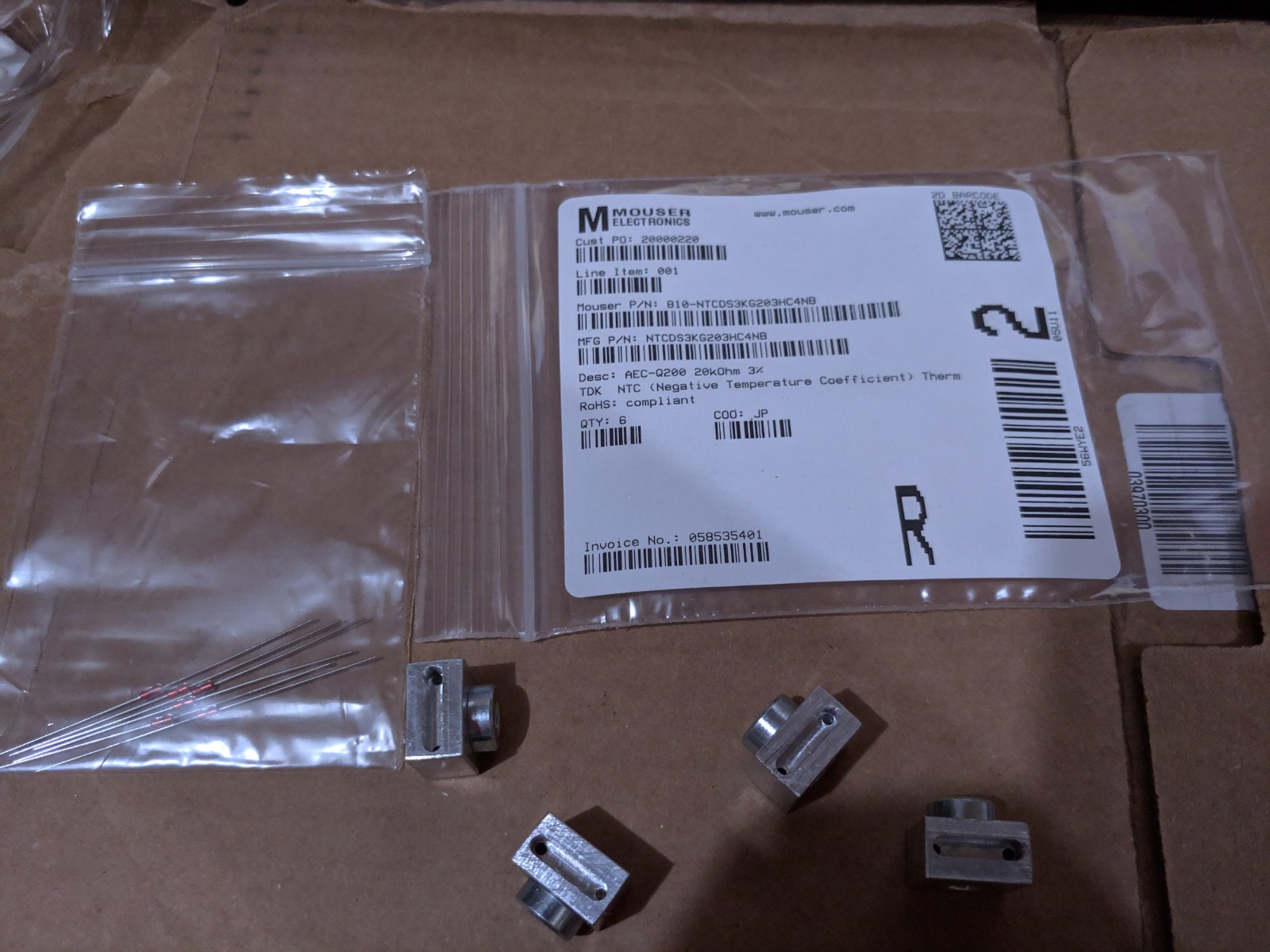 I also changed direction on the engine temp sensor. Instead of going off of oil temp I decided to use cylinder head temp. Crazy idea i know. Anyways, i bought some NTCDS3KG203HC4NB thermistors and potted them in little aluminum blocks. I mounted them in that odd little square feature between the intake runners on the head.